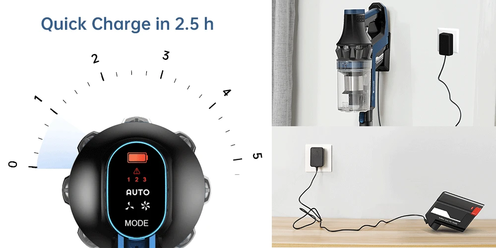QuickCharge технологии Proscenic P10 Pro полностью заряжается всего за 2,5 часов, намного быстрее по сравнению с другими пылесосами