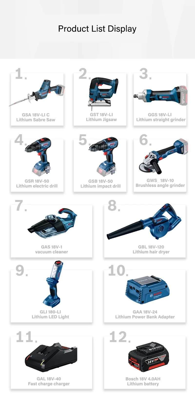 Примечание: все эти модели представляют собой электроинструменты на 18 в и представляют собой металлические версии (solo), которые подходят для покупателей, у которых есть аккумуляторы Bosch на 18 в, поскольку аккумуляторы Bosch 18 в совместимы с электроинструментами 18 в. Все электроинструменты Bosch 18 в могут использоваться с батареей 18 в.