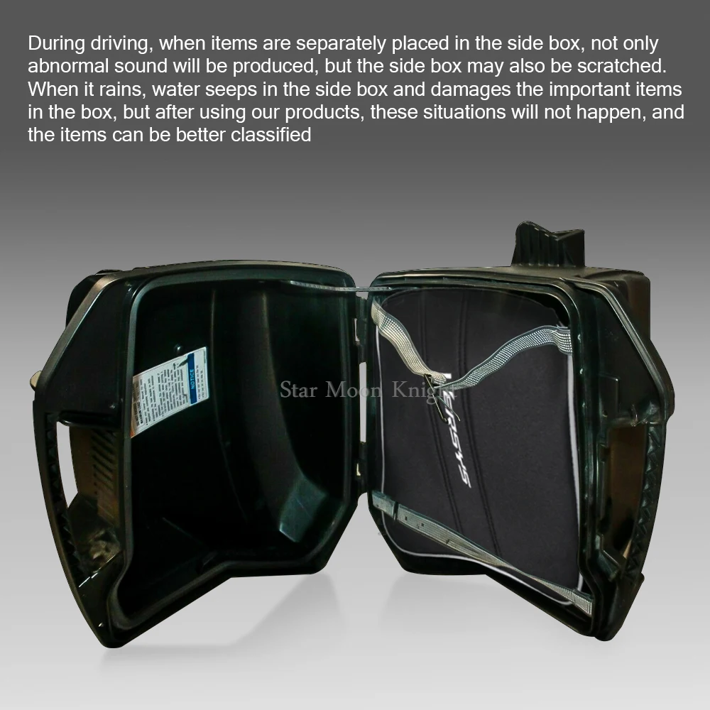 Продукт может хранить и классифицировать предметы, перевозимые с автомобилем, предотвращать просачивание воды в коробке от повреждения важных документов и избегать аномального шума, вызванного столкновениями между коробкой и изделиями во время вождения. После прибытия в пункт назначения, просто возьмите упаковку Как только вы приедете в пункт назначения, просто возьмите упаковку для KQR 28 литровый жесткий набор вкладышей седла, оставив тяжелые пластиковые чехлы на вашем велосипеде.