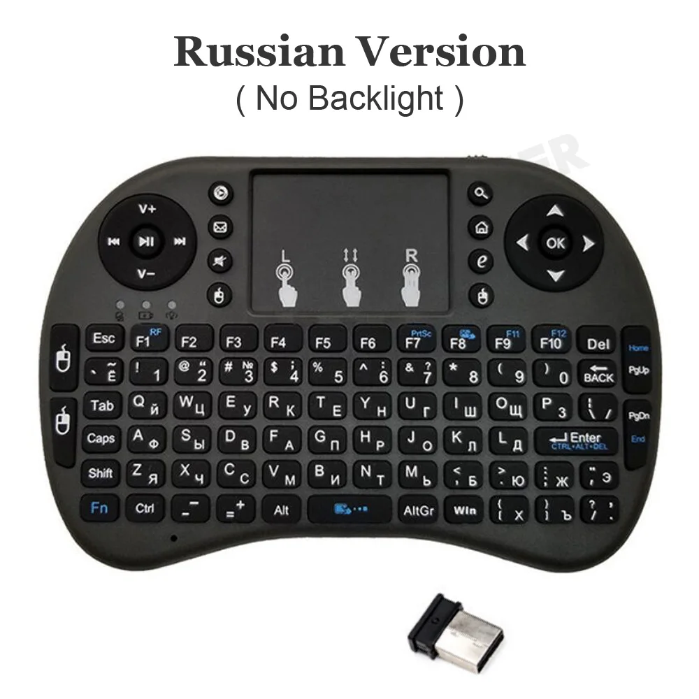 1 x беспроводная клавиатура 1 x приемник 2,4G Примечание: батарея в комплект не входит!