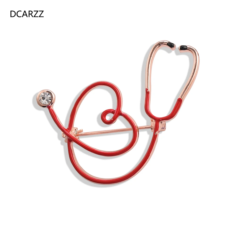 DCARZZ золото розовое золото Броши Булавки Красная эмаль стетоскоп в форме сердца булавка доктор медсестра рюкзак отворот милые ювелирные изделия женщина подарок