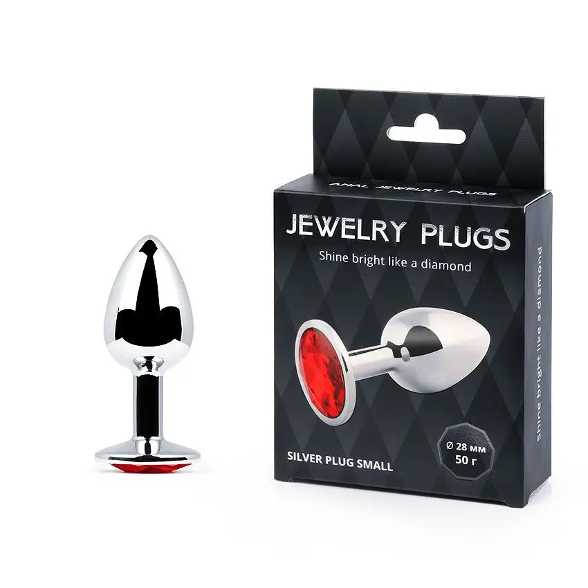 Серебристая анальная пробка с красным стразом - 7,2 см.