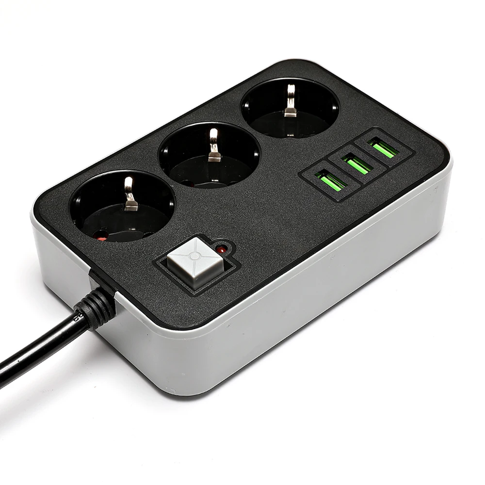 3 розетки переменного тока, штепсельная вилка европейского стандарта, штепсельная Вилка USB