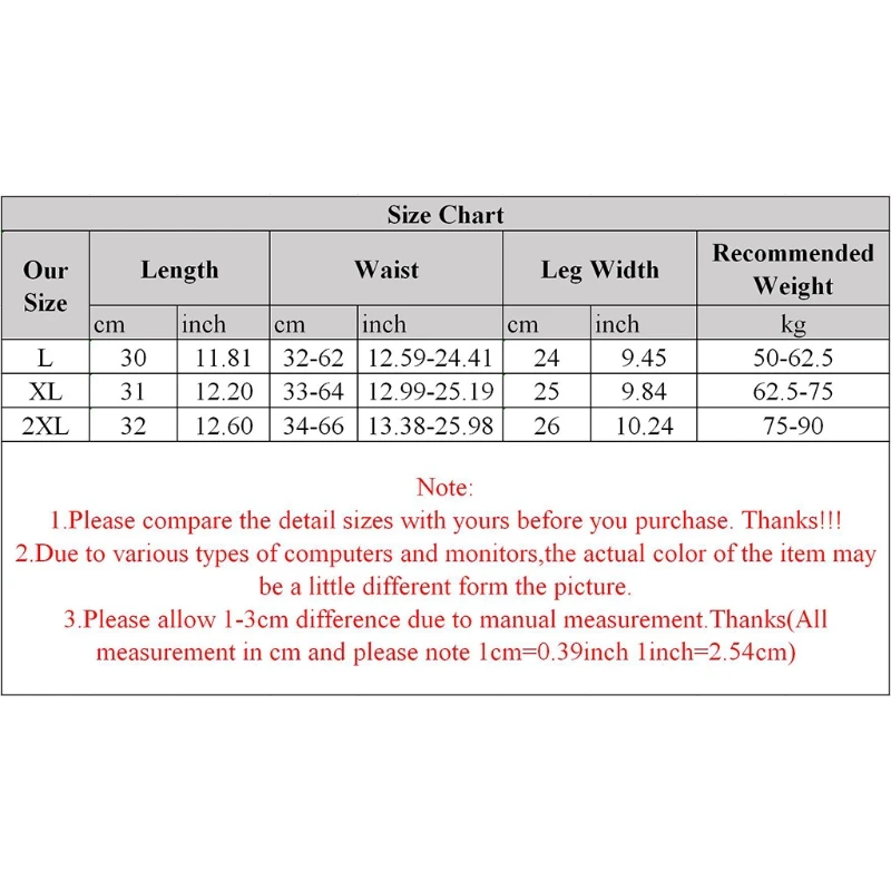 Размер: 2XL длина: 32 см (12,59 дюйма) Талия: 34 см-66 см (13,38 дюйма-25,98 дюйма) ширина ноги: 26 см (10,23 дюйма) рекомендуемый вес: 75 кг-90 кг