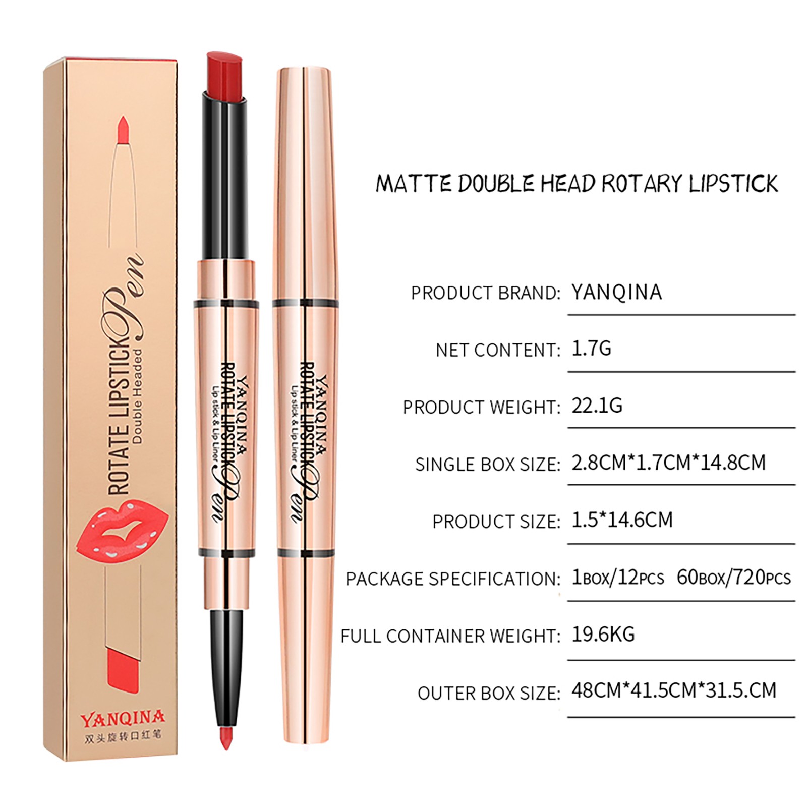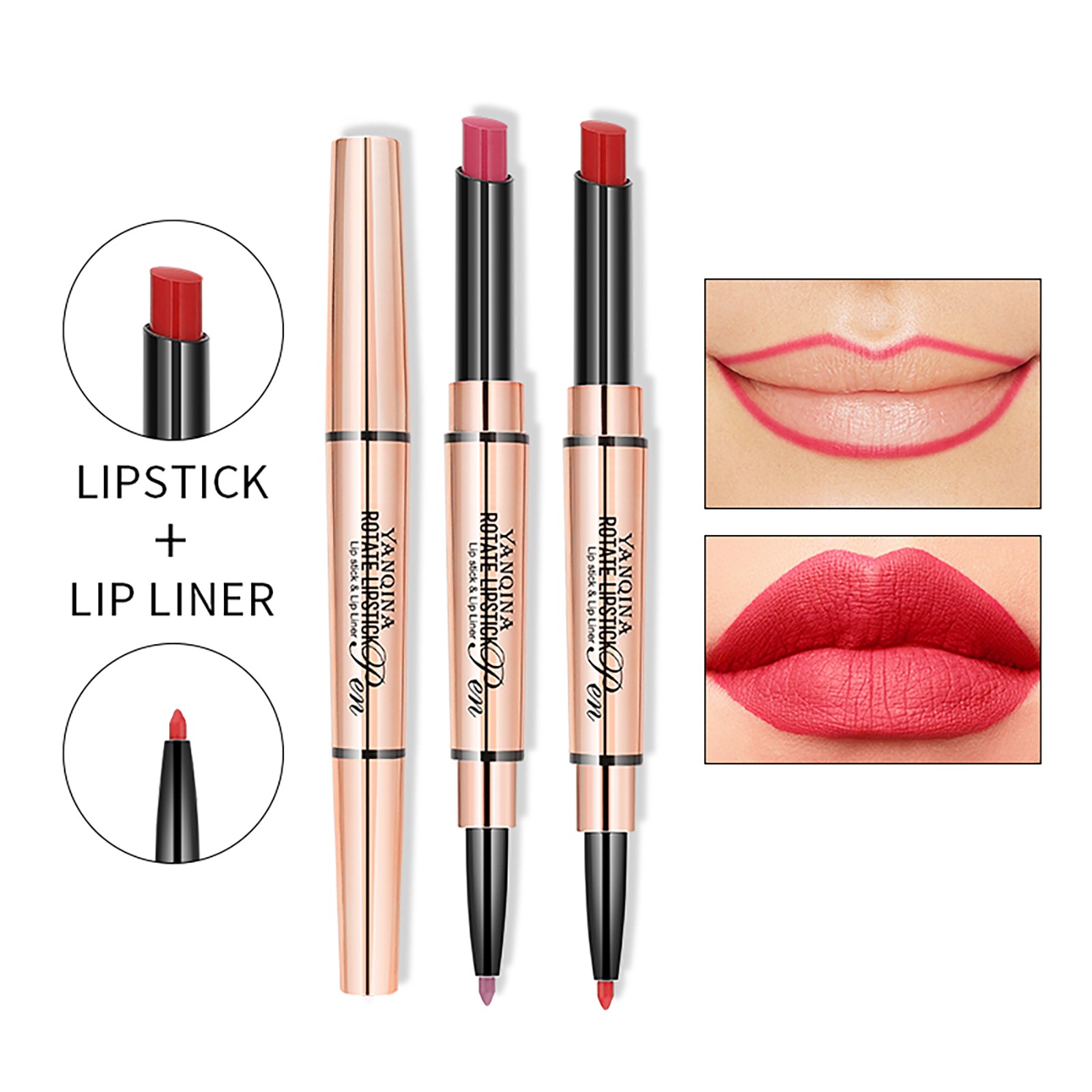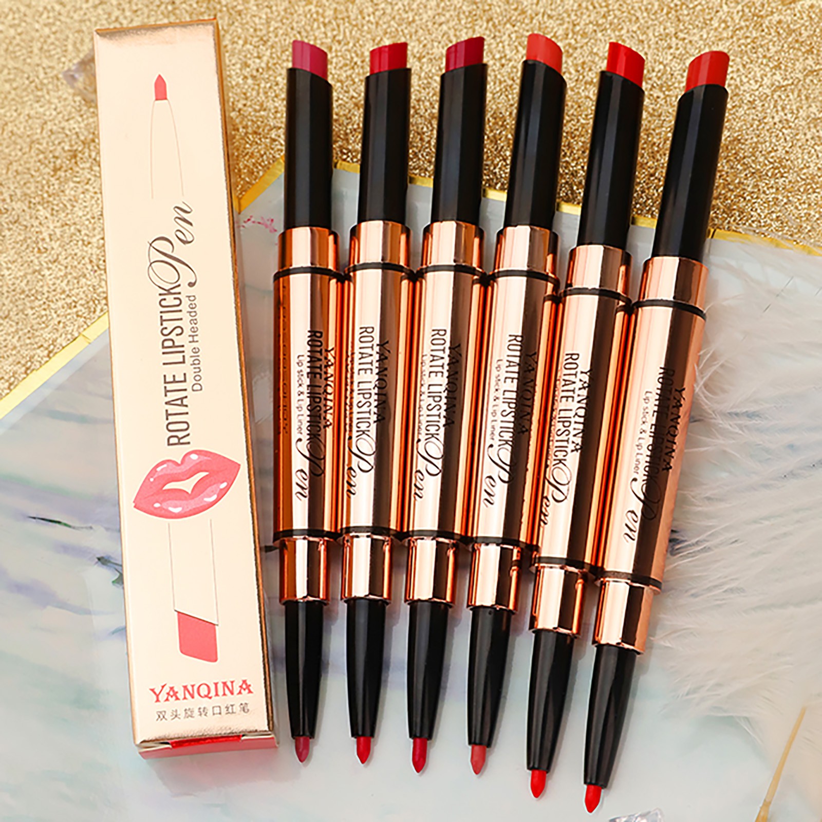 Yan Qina, маленькая золотая губная помада, подводка для губ и ручка не легко выцветают