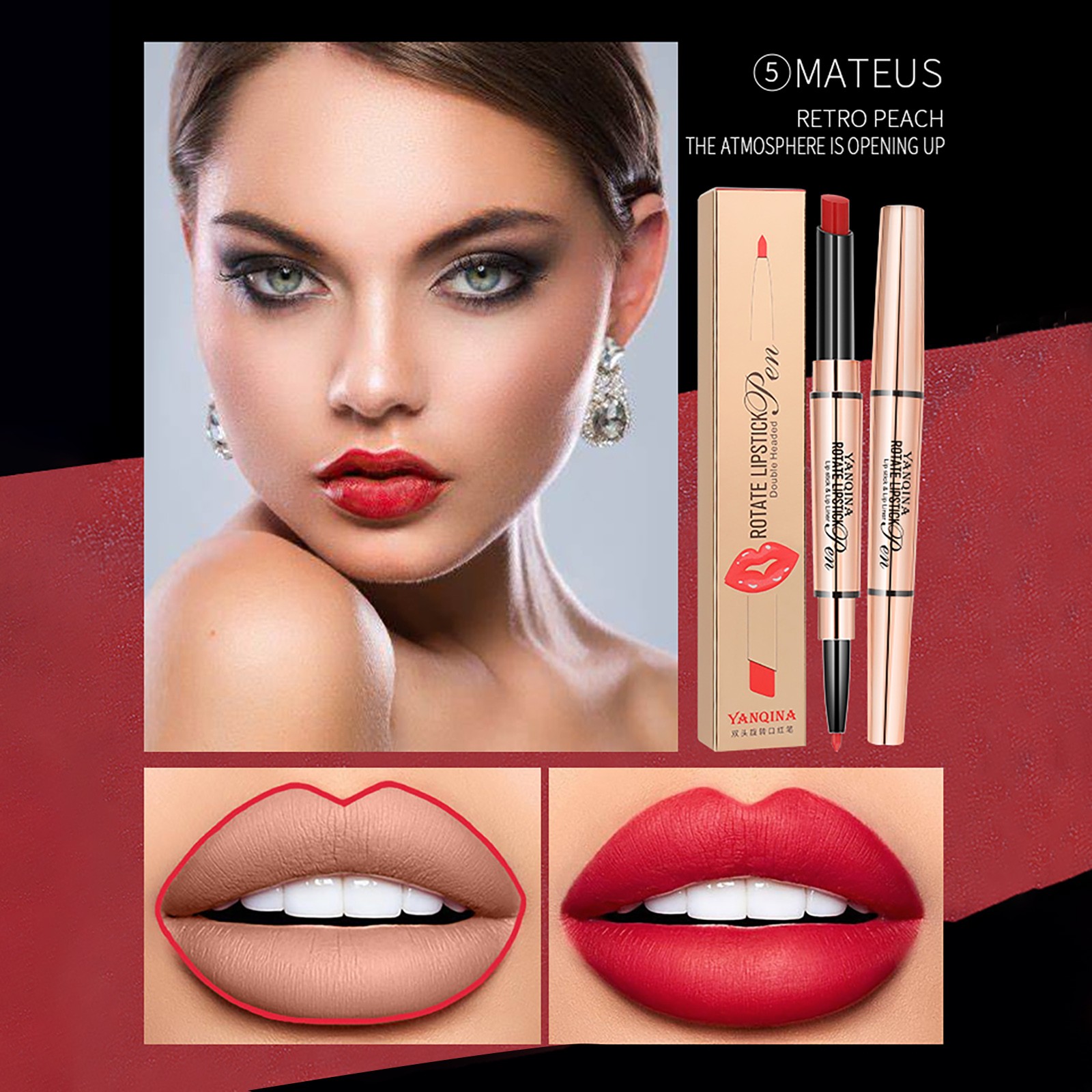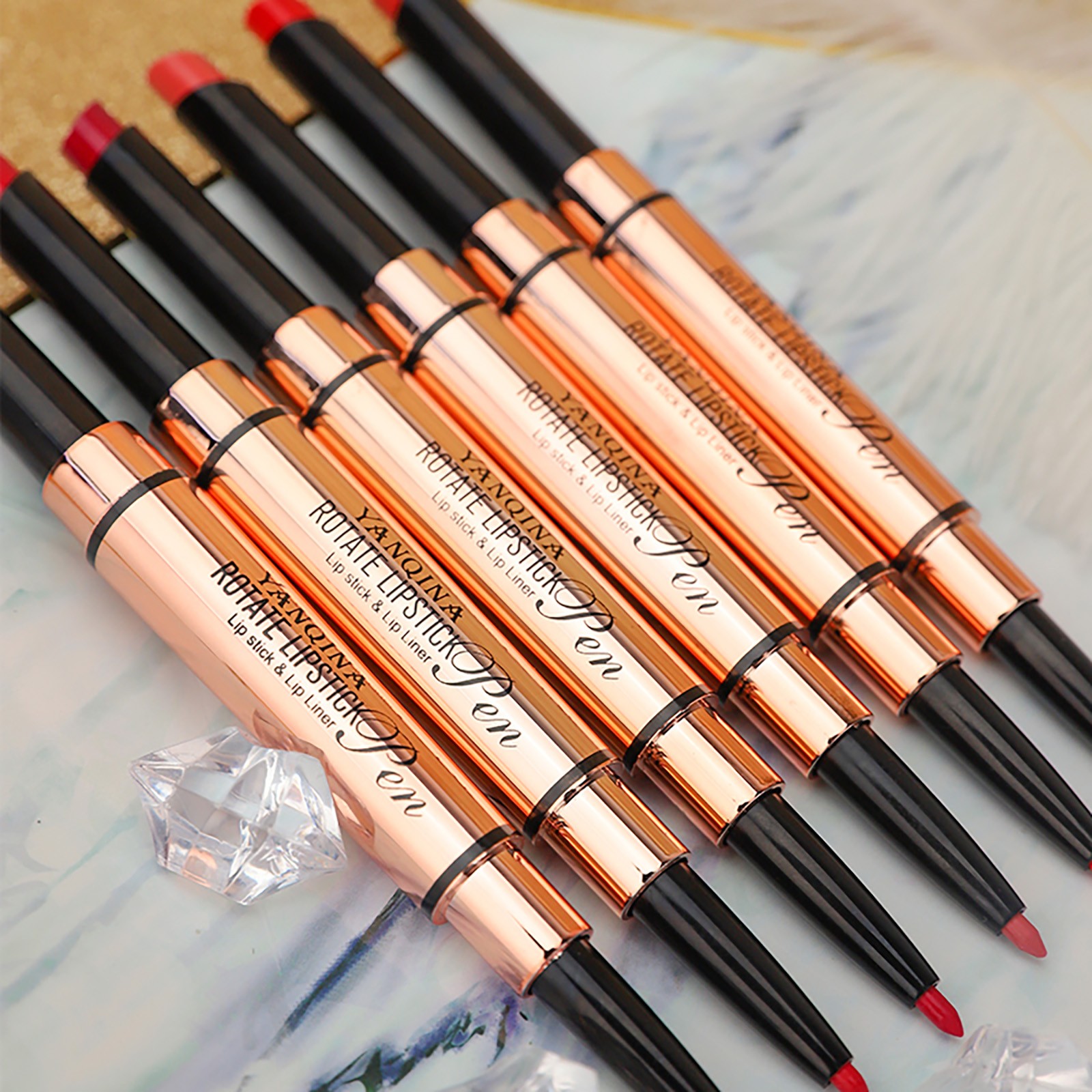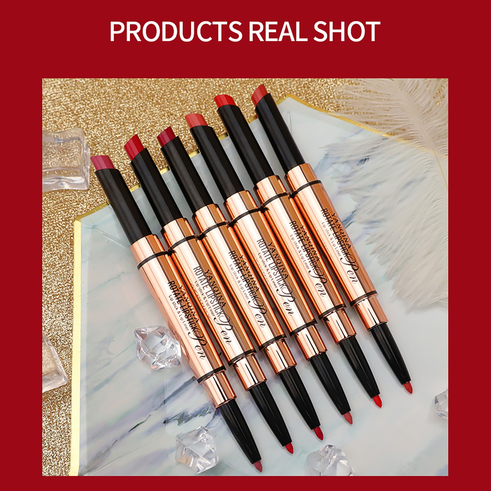 Yan Qina, маленькая золотая губная помада, подводка для губ и ручка не легко выцветают