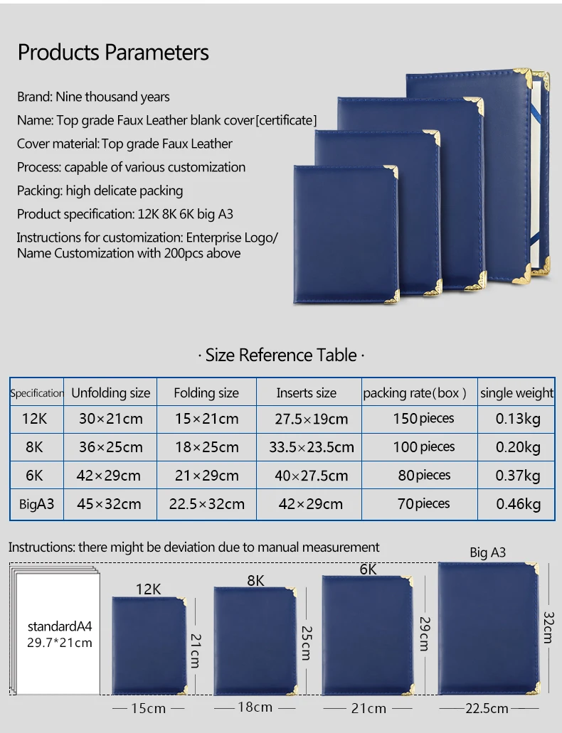 Логотип обложки сертификата: Debossing,Gold folio,Silver folio и так далее Минимальный заказ логотипа: 30 шт. Кожаный чехол: другие цвета на заказ с 150 шт. выше