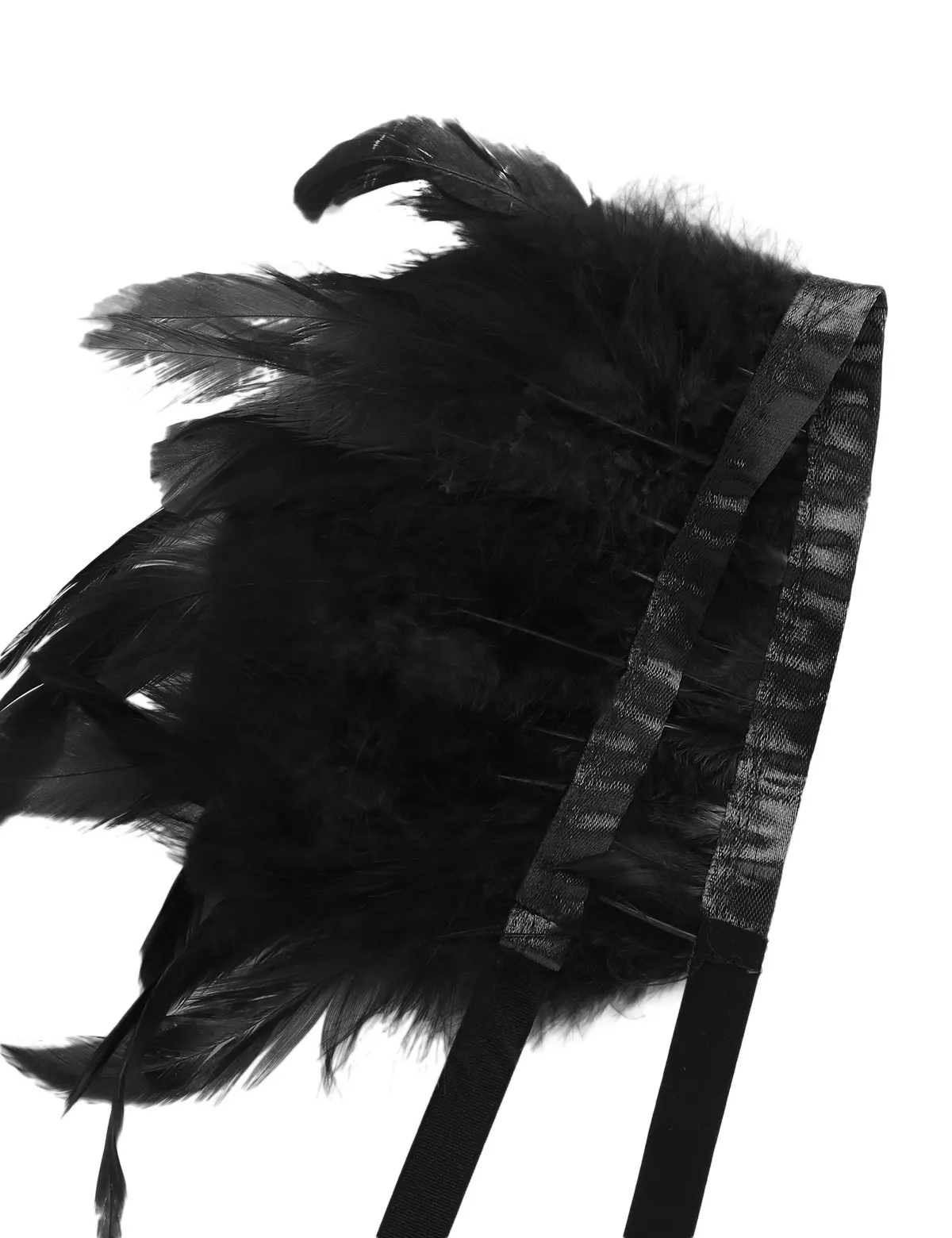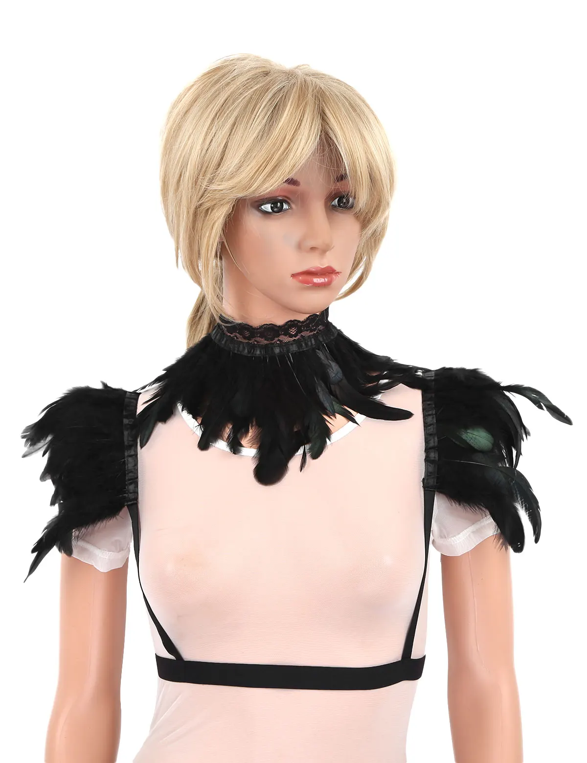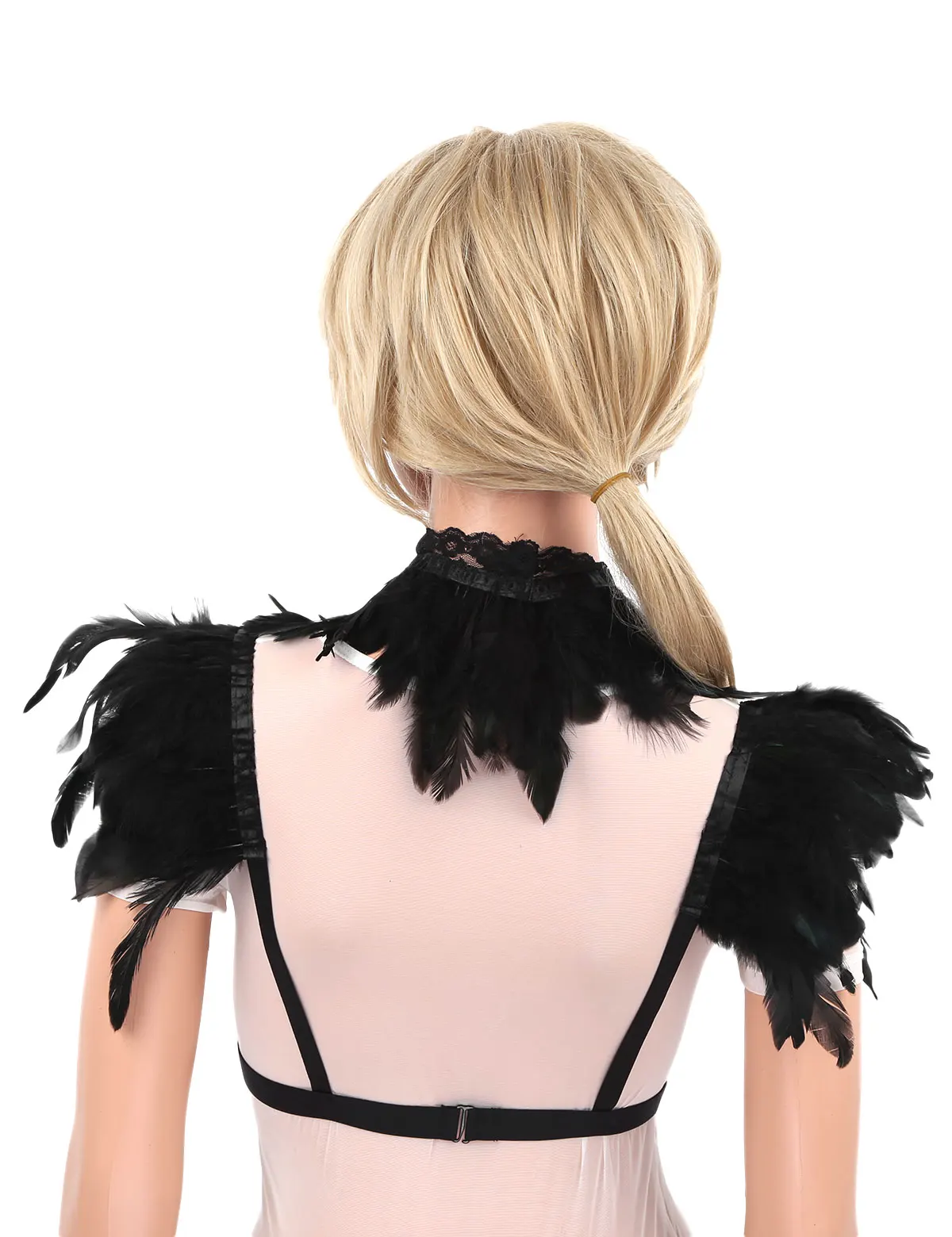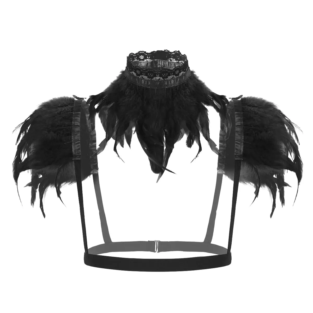 Женская готическая викторианская шаль из натурального пера, накидка на плечо с воротником и крыльями перьев, женский сексуальный в клетке бюстгальтер, фестивальный Рейв, костюм, ремни