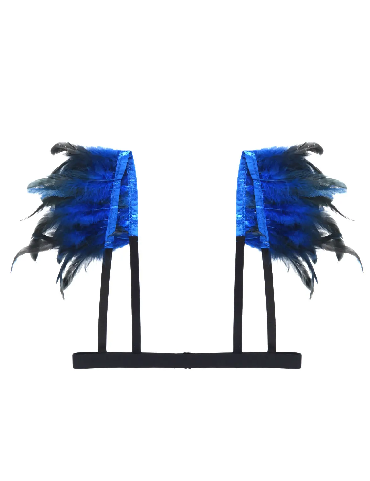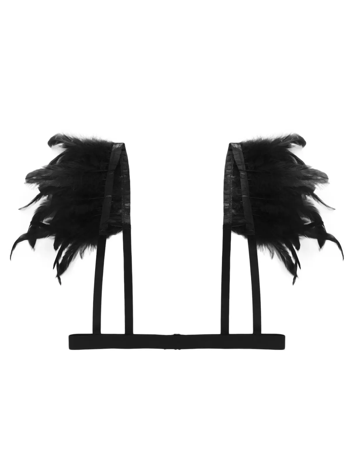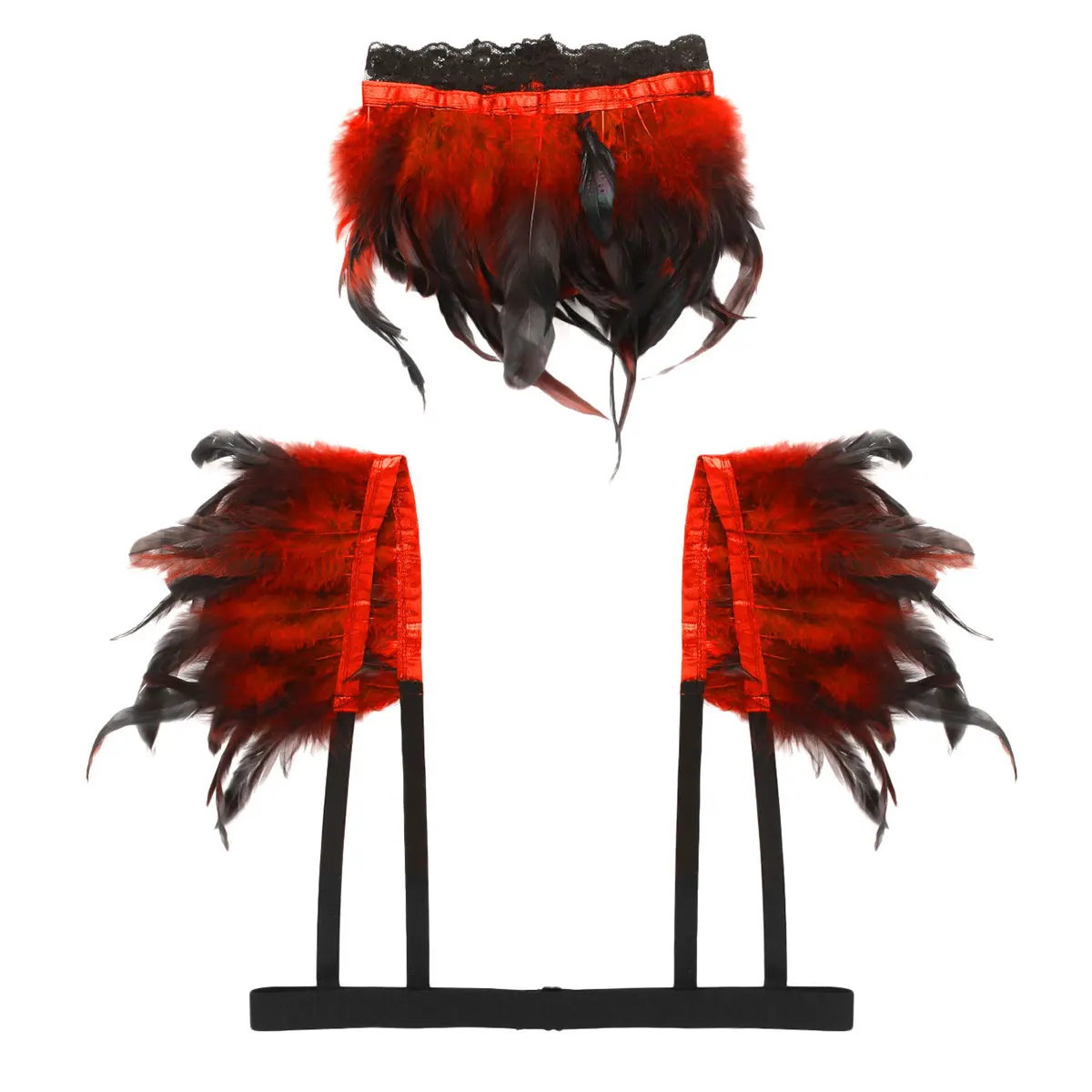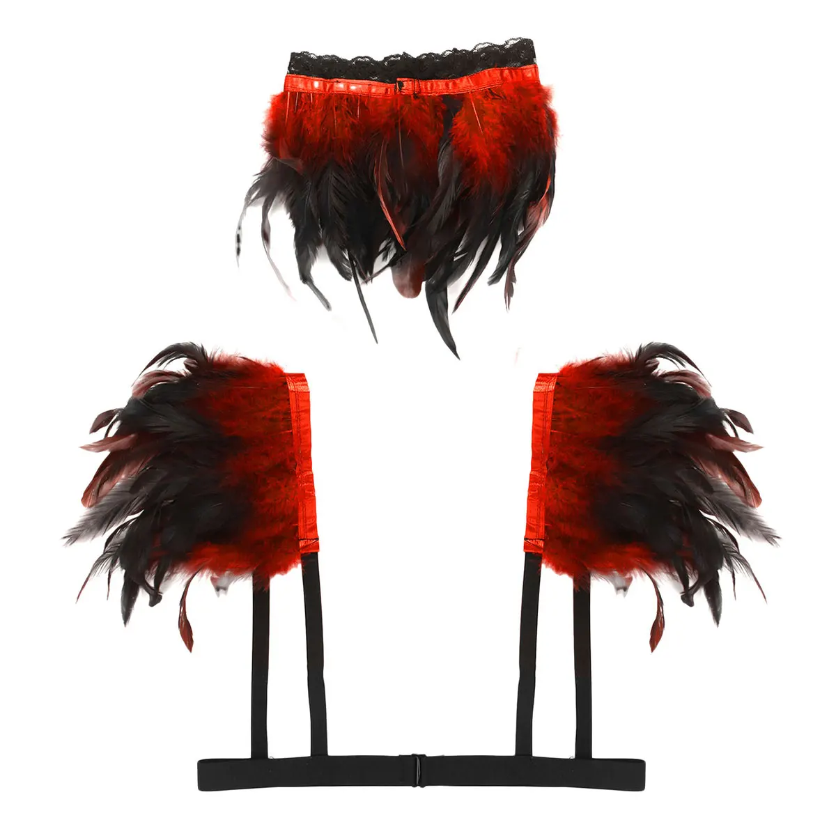 Женская готическая викторианская шаль из натурального пера, накидка на плечо с воротником и крыльями перьев, женский сексуальный в клетке бюстгальтер, фестивальный Рейв, костюм, ремни