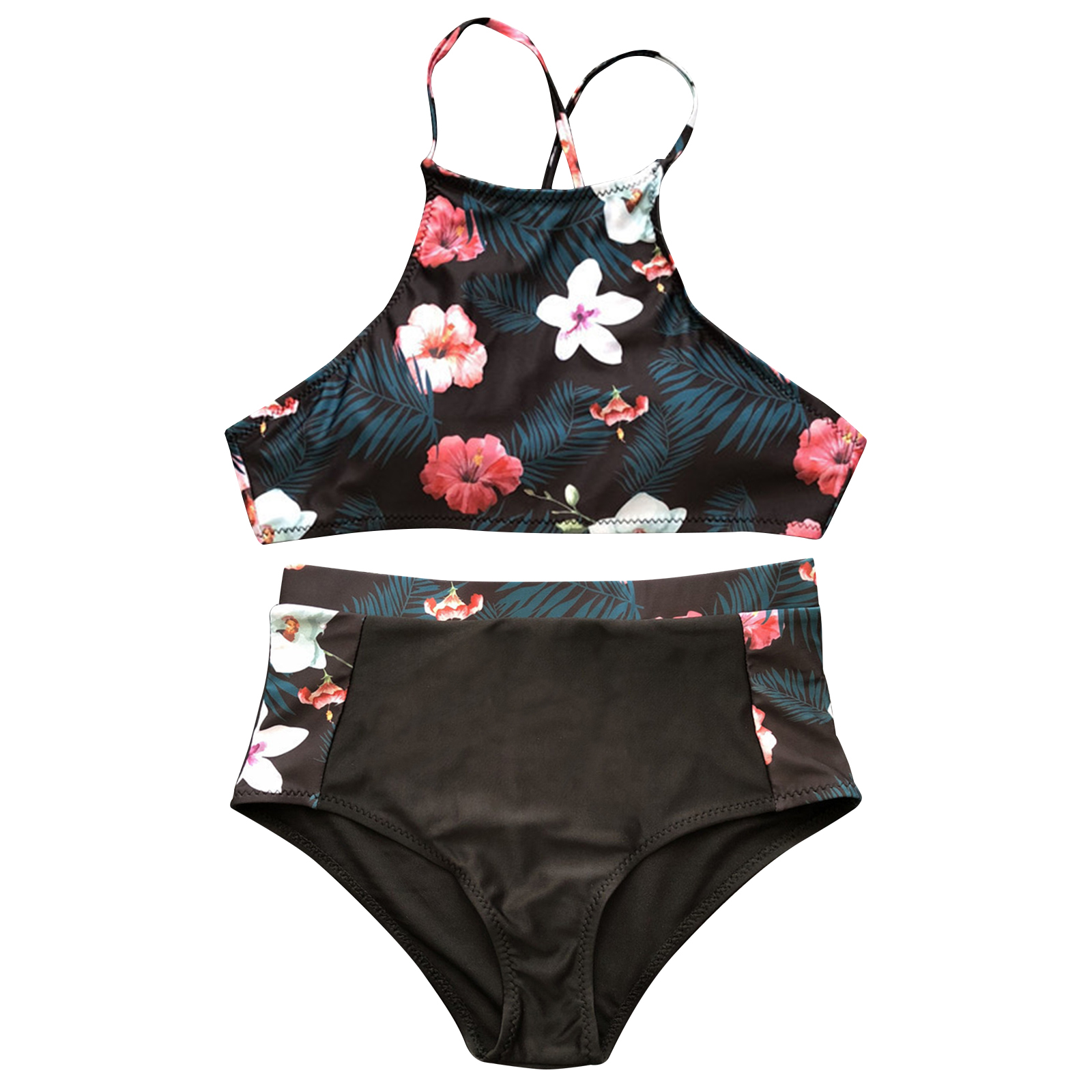 Купальный костюм из двух предметов, топы с u-образным вырезом, Трусики с высокой талией, цветочный узор, простой и сексуальный.