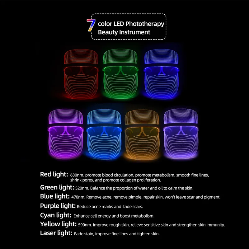 Красный свет: длина волны 630 нм, способствует циркуляции крови, ускоряет метаболизм, разглаживает мелкие линии, сужает поры и пролиферат коллагена.