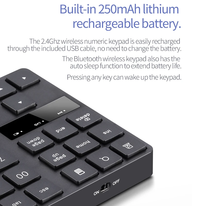 Долгосрочная работа-цифровая клавиатура Bluetooth имеет встроенный аккумулятор.