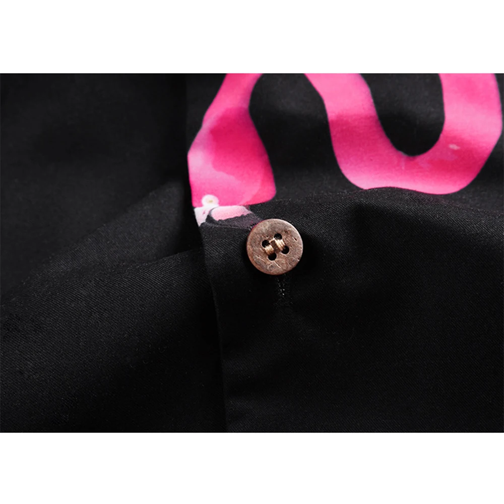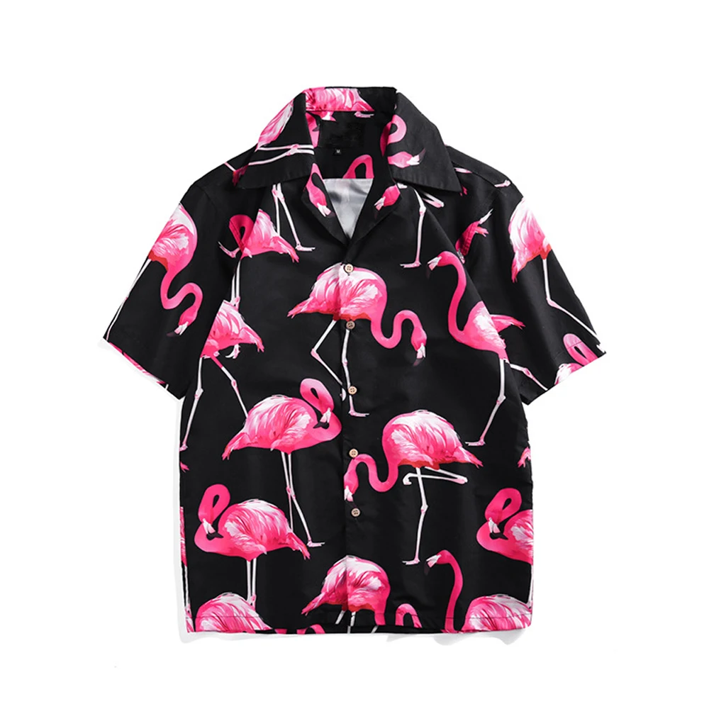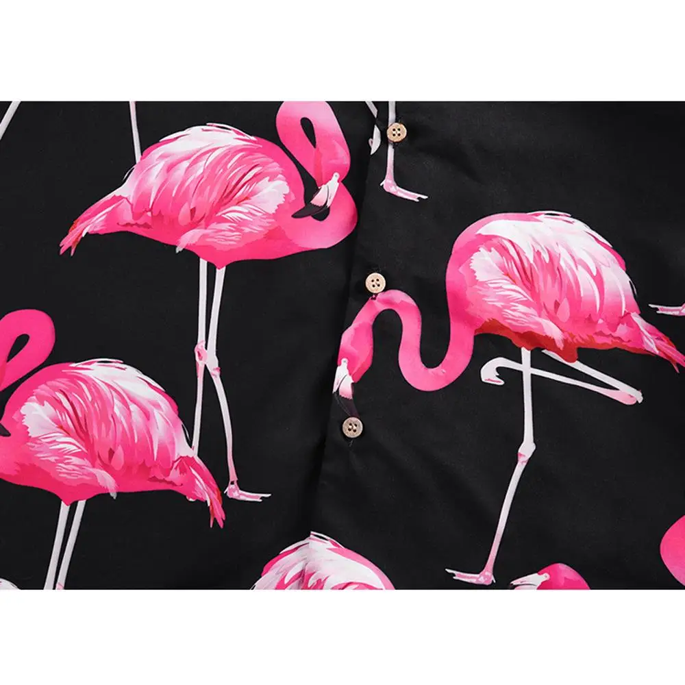 Herenkleding летние рубашки для мужчин VD1933 с коротким рукавом цифровая печать черный Фламинго кнопка вверх Гавайские мужские рубашки
