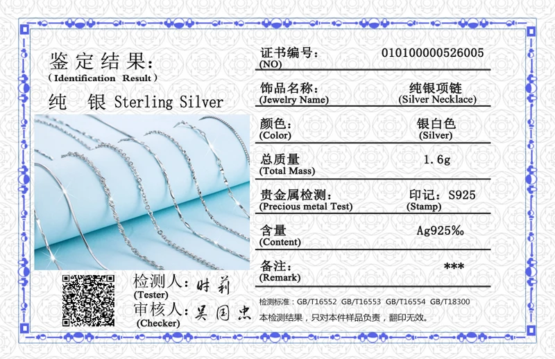 Материал ожерелья: 100% оригинальное серебро 925 пробы