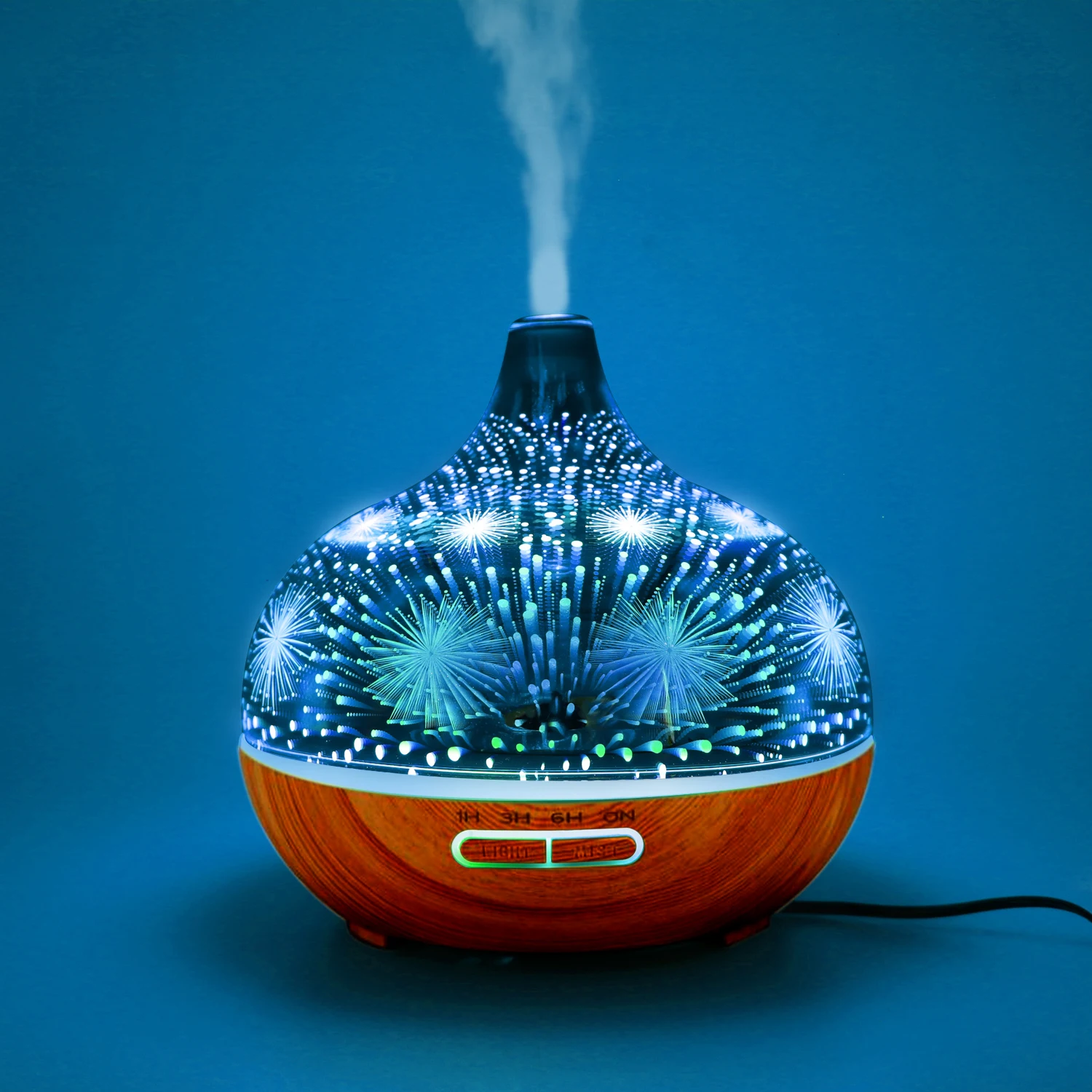 2. Цвет Фул светодиодный эффект: ароматизатор-увлажнитель занимает 7-Цвет светодиодный Цвет Ночной светильник с стилизованные под языки пламени шаблон для вас, чтобы выбрать для отображения в циклическом режиме, замерзайте до фиксированного цвета или полностью выключите. Подходит для спальни, офиса, гостиной, ванной комнаты, йоги, спа, конференц-зала, детской комнаты и т. д.