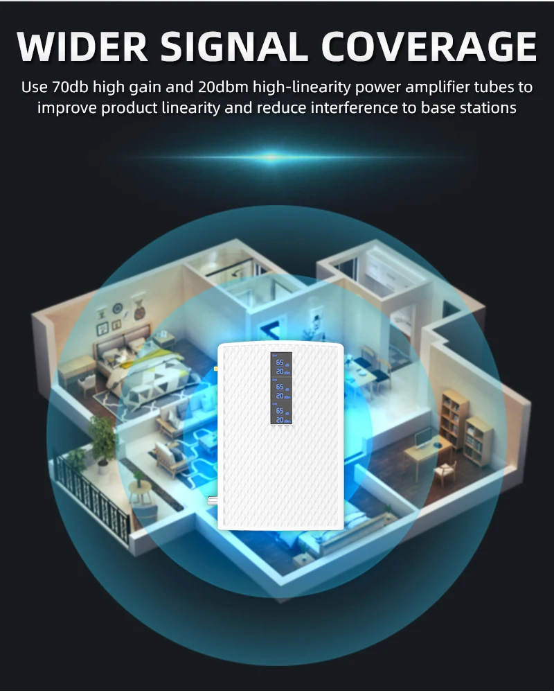 2. Максимальный 70 дБ высокий коэффициент усиления, выход 20 дБм. Между тем может быть подключен 1-3 комнатные антенны.