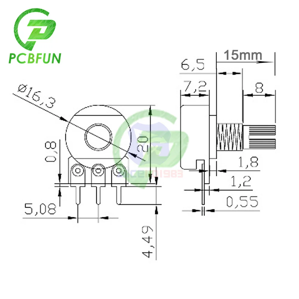 Значение сопротивления: 1K Ом, 2K Ом, 5K Ом, 10K Ом, 20K Ом, 50K Ом, 100K Ом, 250K Ом, 500K Ом, 1 м ом