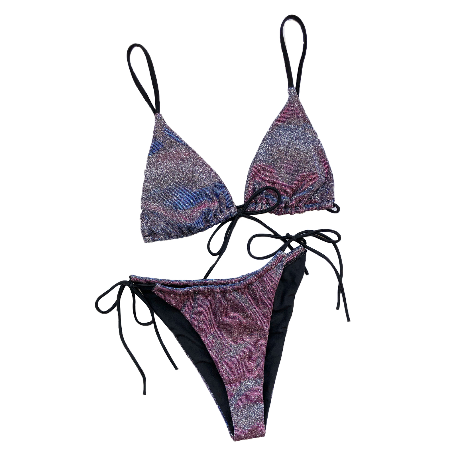 Женское сексуальное блестящее бикини на шнуровке, топы без рукавов на бретельках, плавки, купальник