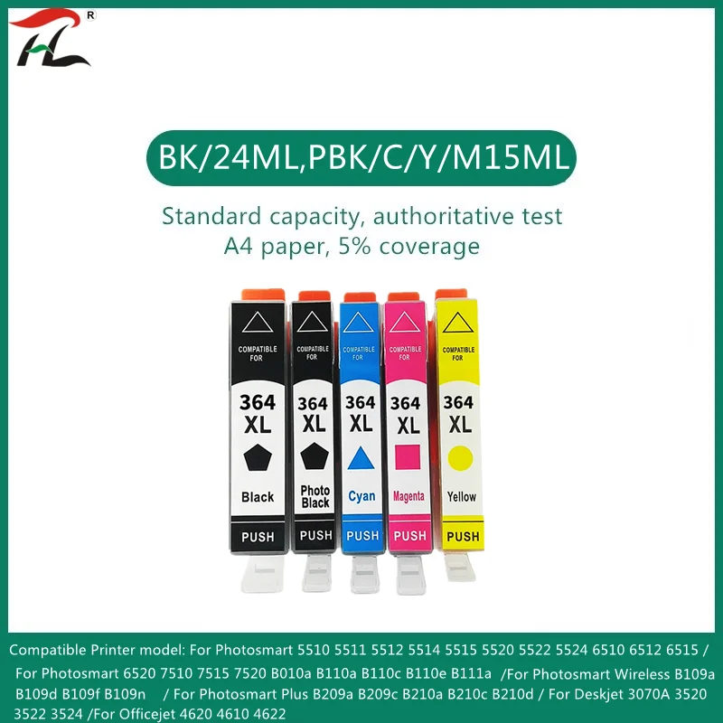 364XL BK 24 ml, 100% new compatible ink cartridge, display ink level