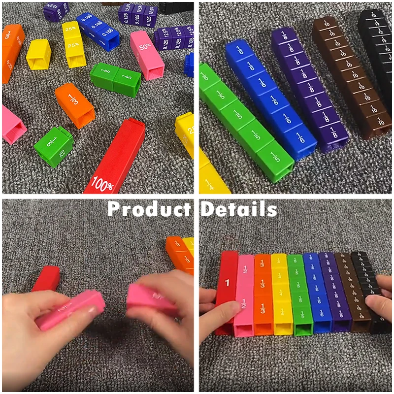 · Научите десятичные, процентные и Фракционные концепции практичным, реальным способом с этими цветными кубиками