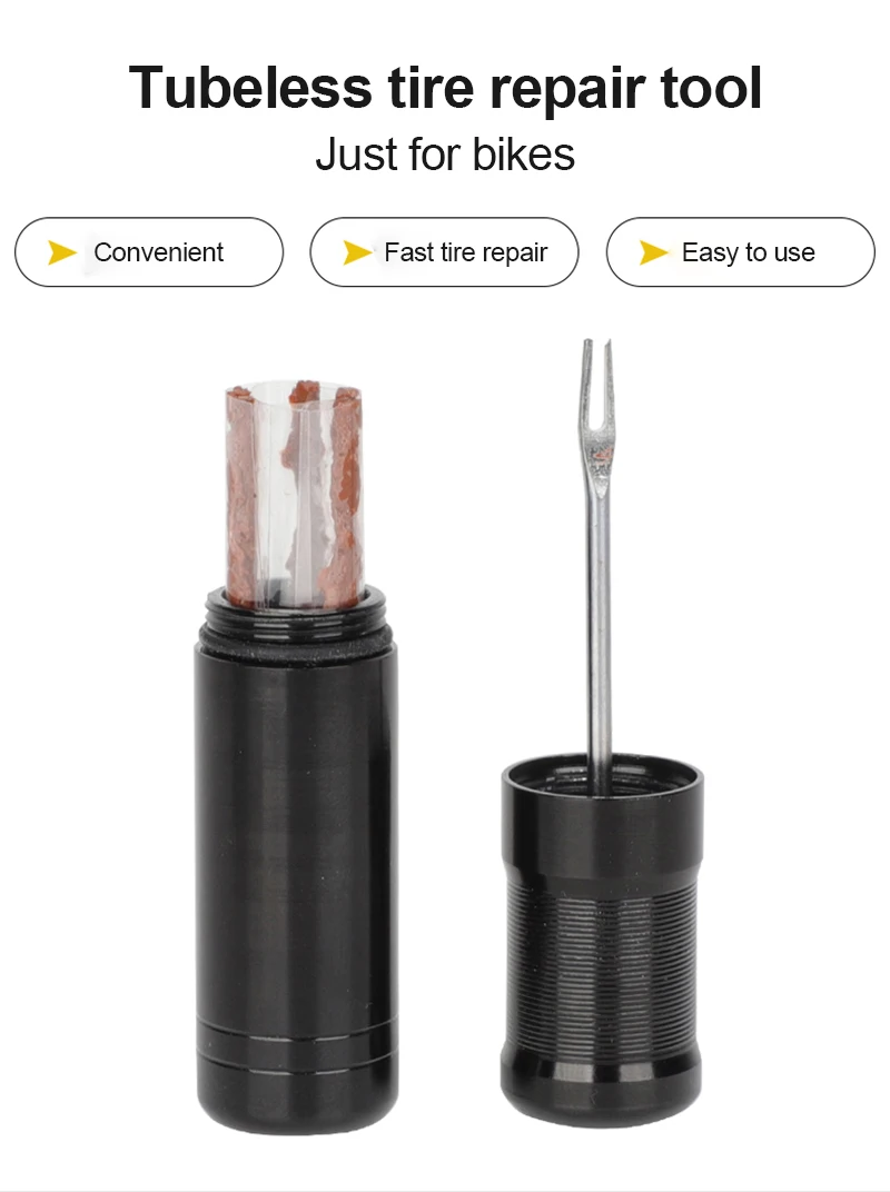 Этот инструмент предназначен только для бескамерных велосипедных шин. Для ремонта прокола может вставлять по 2 полоски за раз. Пожалуйста, измените на другой способ, когда 2 полосы недостаточно большие, чтобы заглушить отверстие.
