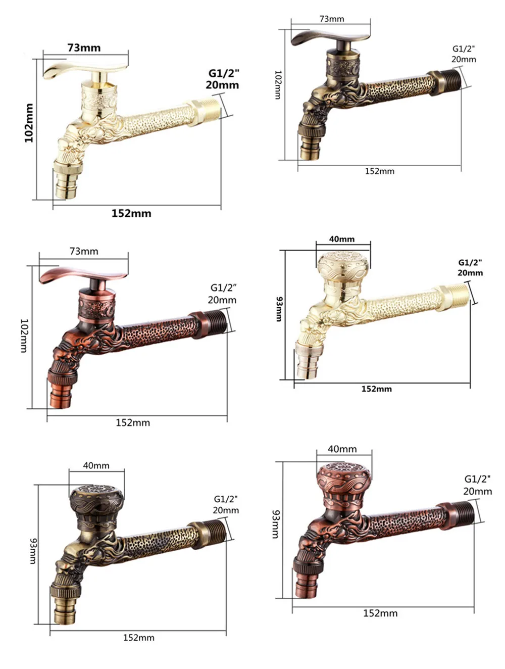 Название продукта: Бесплатная доставка, удлиненный латунный декоративный наружный садовый смеситель, резной настенный кран, стиральная машина, Швабра, краны Torneira parede