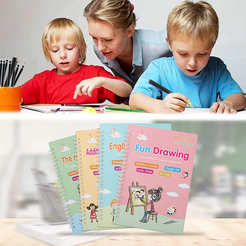 4 книги, обучающая английская живопись, книга для практики, многоразовая книга, детская книжка для письма каллиграфии, Детская английская надпись, игрушка