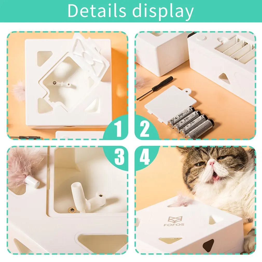 Этот игрушечный ящик для кошек работает от батареи, безопасен и веселый, подходит для кошек, чтобы играть каждый день, и может облегчить беспокойство кошек.