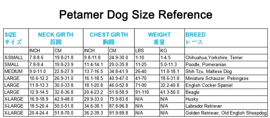 Пожалуйста, проверьте таблицу размеров ниже, чтобы подтвердить размер вашей собаки.