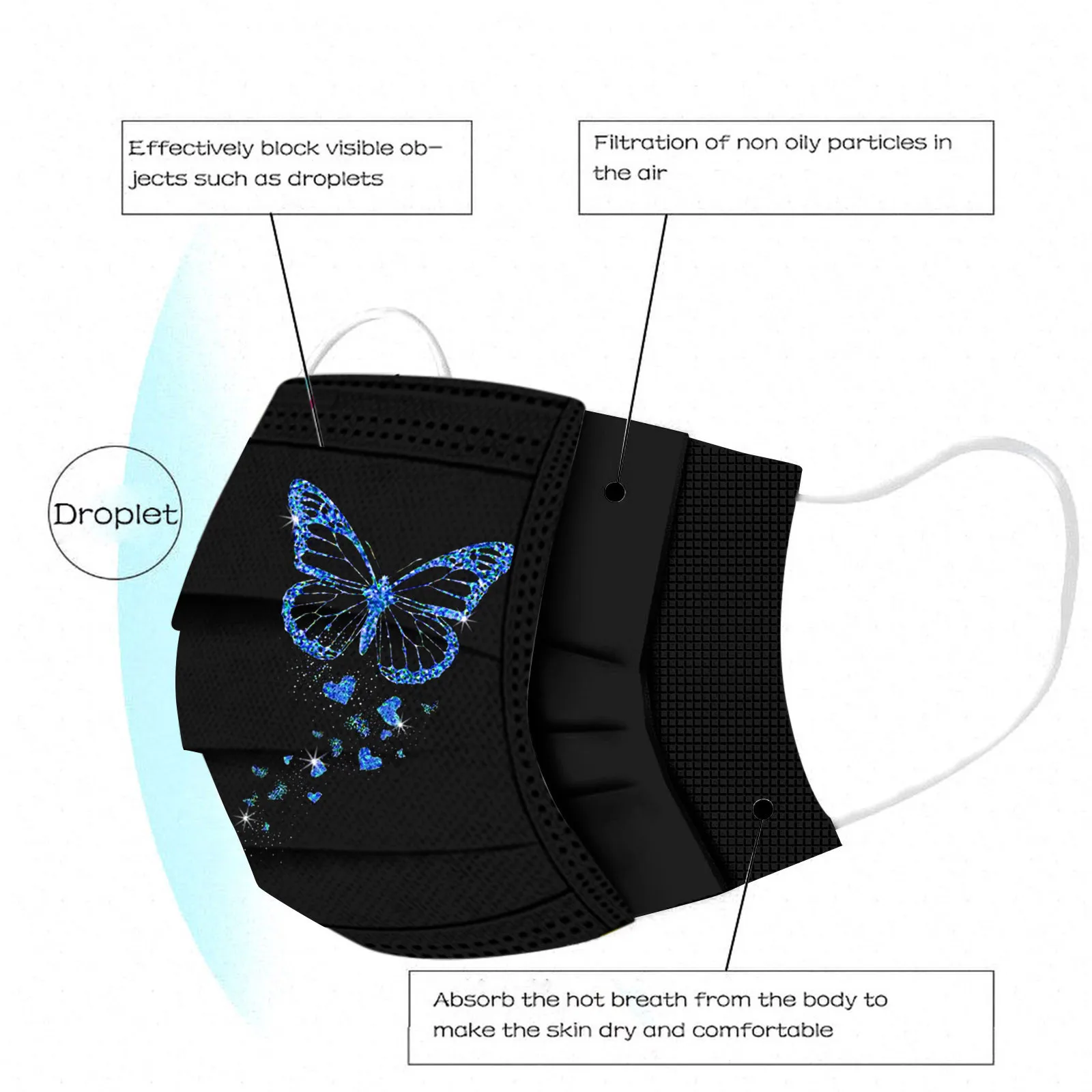 Description10 шт. маски с принтом бабочки для взрослых одноразовые защитные маски для лица