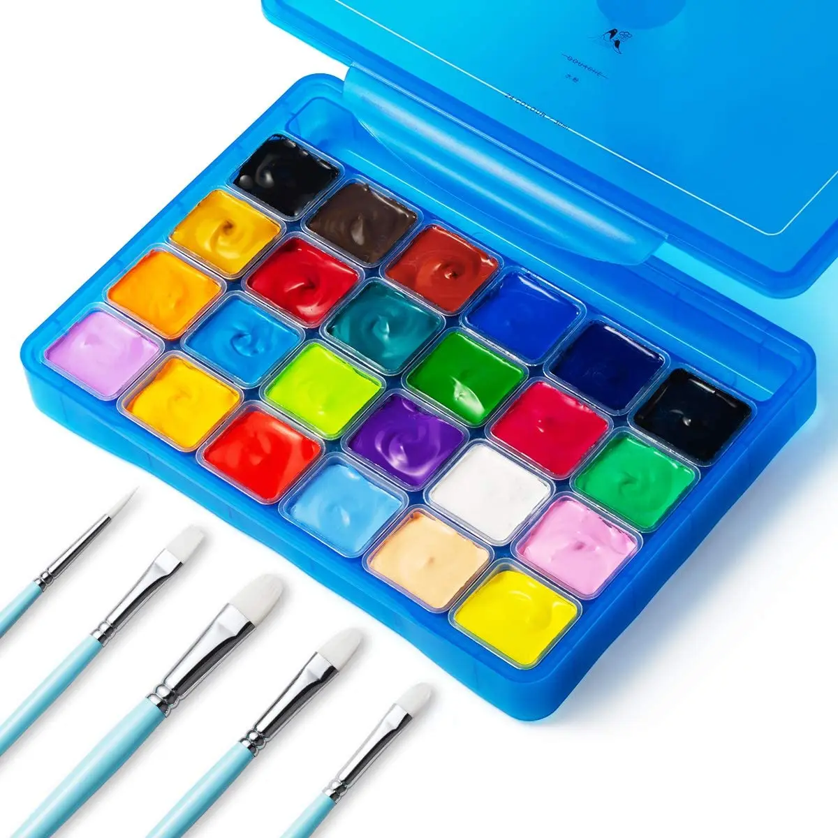 1. Яркий Набор цветных кисточек с красками: 24 цвета хими гуашь набор красок с 24 яркими цветами, толстый и кремовый оттенок в чашке желе, яркий и жидкий для краски, красиво смешивается для вашей художественной работы;