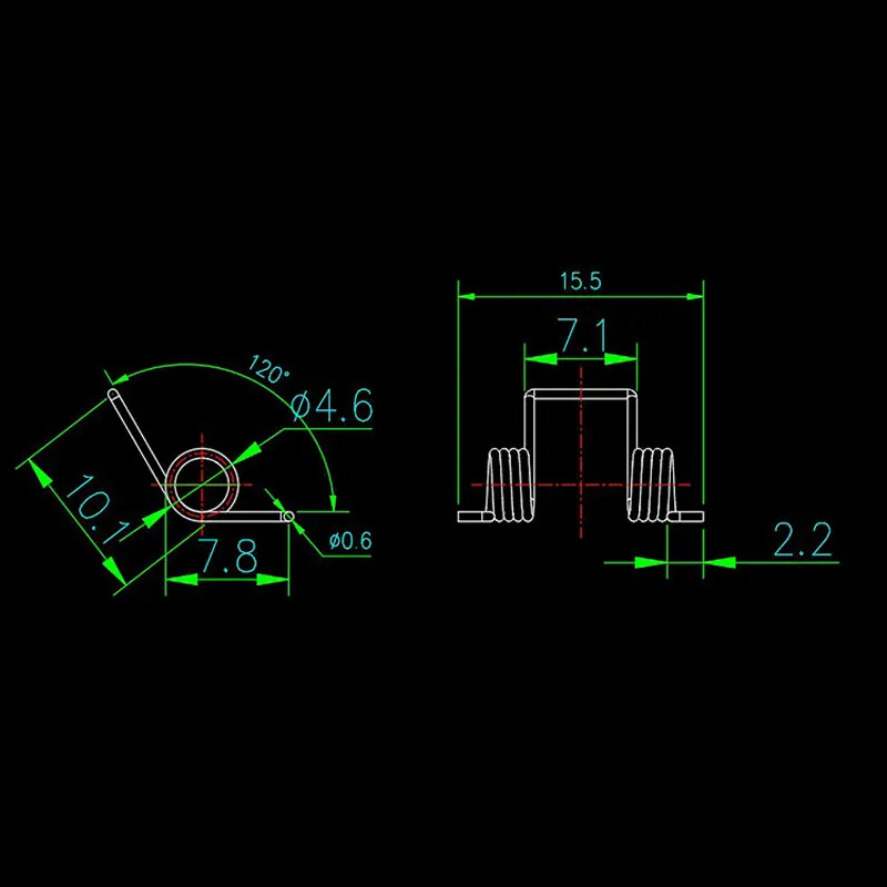 120 Degree 304 Stainless Steel Wire Diameter 0.6mm Double Quick Hook Strong Torsion Spring
