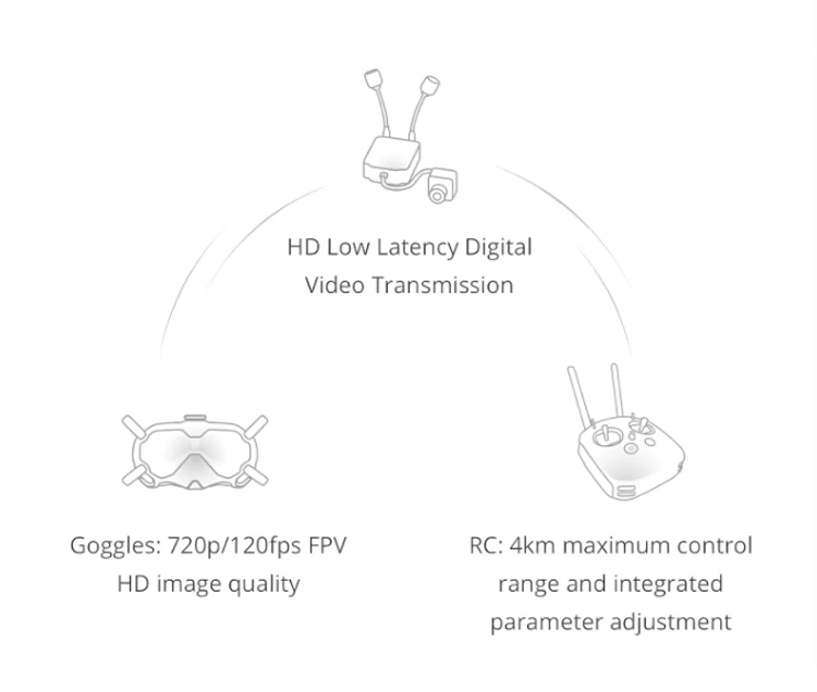 Пользователи могут беспроводно подключить свой воздушный блок к пульту дистанционного управления DJI FPV без необходимости покупки дополнительных приемников. Это значительно сокращает время подготовки к полету.