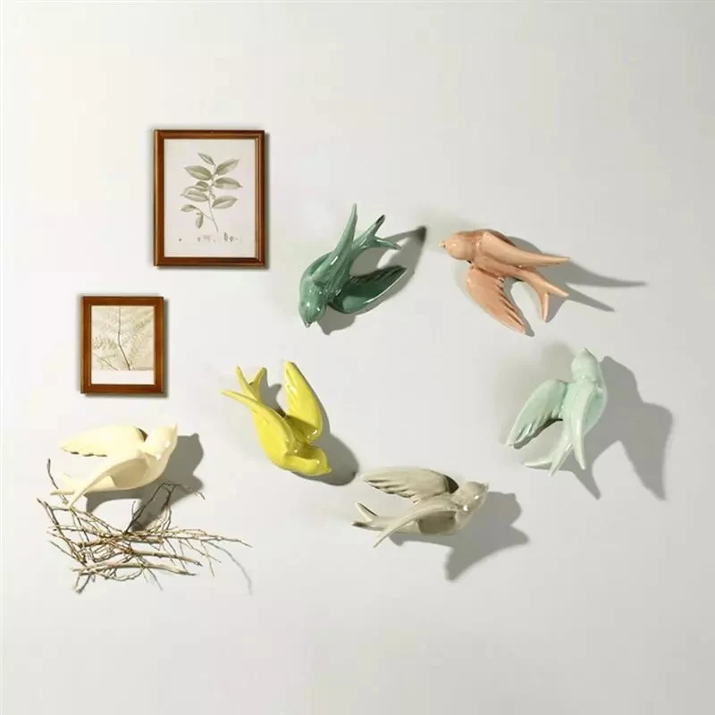 Красочные керамические птицы Настенный декор, уникальный дизайн, лучший выбор для вашей гостиной, спальни, кухни, столовой, может мгновенно привлечь глаза вашей семьи и друзей. Высокотемпературный процесс растрескивания льда, гладкая и деликатная поверхность, делает каждую пружину ласточкой реалистичной.