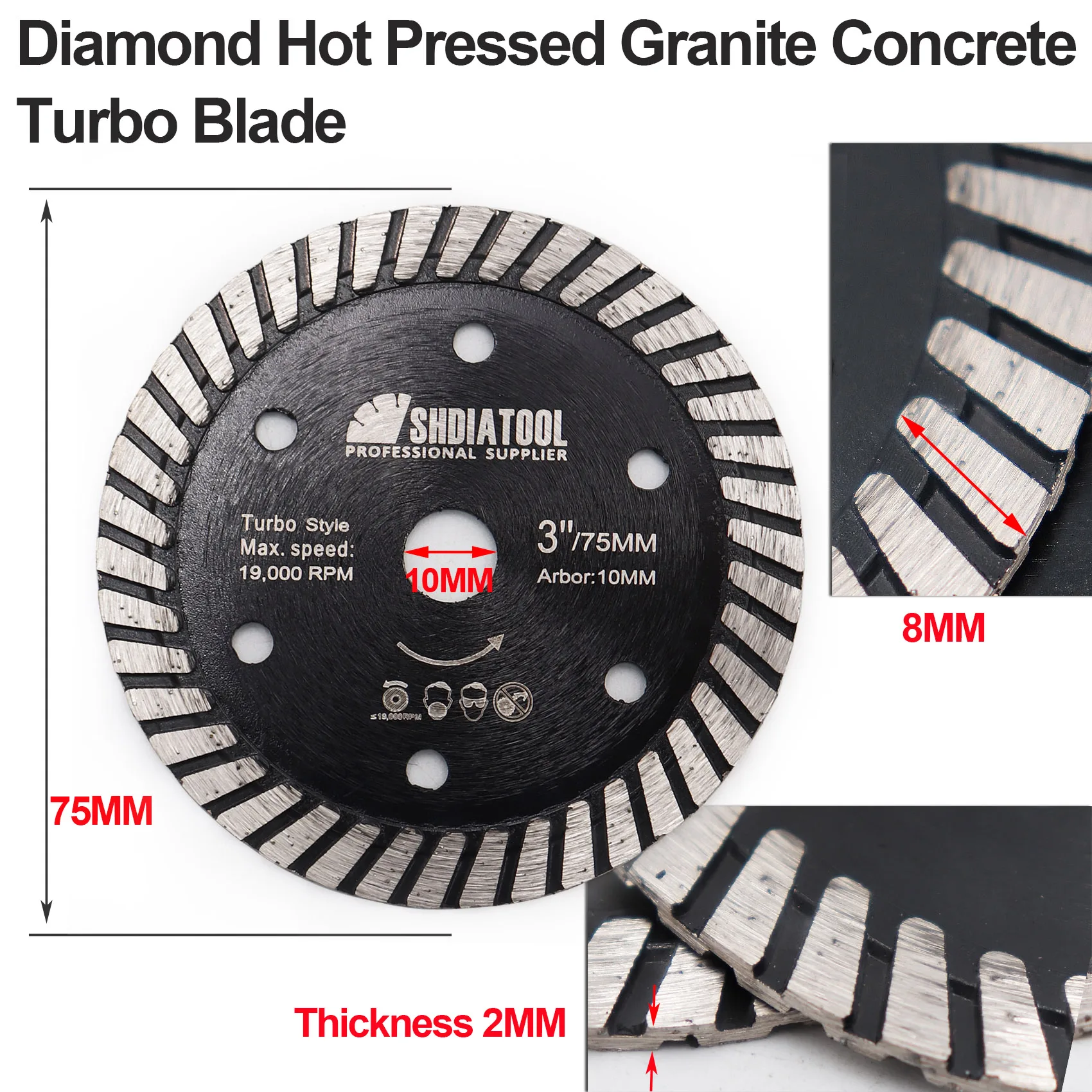 3 " (75 мм) алмазное горячее прессованное гранитное бетонное турбо лезвие