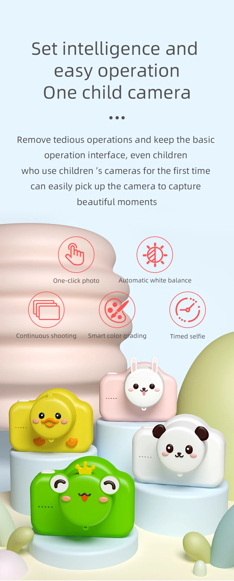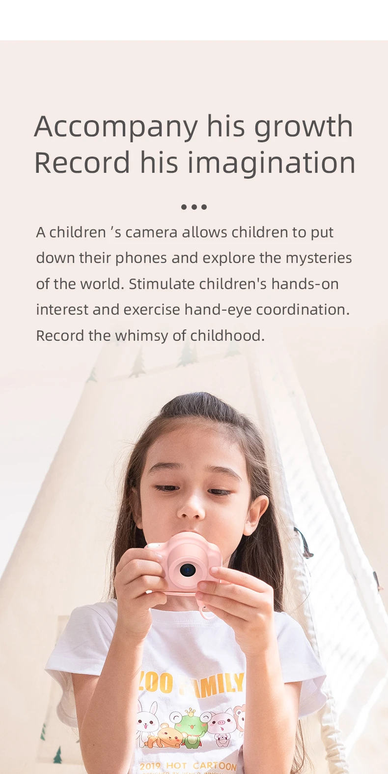 1. Ультра мини-размер, подходит для маленьких детей, очаровательные мультфильмы и яркий цветной дизайн, это вдумчивый подарок для детей, это волшебная камера, которая открывает интеллект, чтобы развивать наблюдение за детьми и открывать для себя красоту. 2. Оснащен 2-дюймовым дисплеем высокой четкости, видеозаписью 1080P, распознаванием лиц, непрерывной съемкой, синхронизацией, фильтром, оригинальной наклейкой для фотографий, поддержкой карт памяти: поддержка 4-32 Гб. Снимайте идеальные фотографии и записывайте яркие видео. 3. Зарядка 2 - 3 часа, время работы: от 3 до 6 часов, простые кнопки, очень удобно для работы детей; Дети могут легко делать интересные фотографии и записывать видео с помощью этой цифровой камеры. 4. Высококачественный пластиковый чехол, прочный и устойчивый к падениям, вам не придется беспокоиться о случайных падениях в руках вашего ребенка. Встроенная перезаряжаемая литиевая батарея с usb-кабелем для зарядки для удобства использования. 5. Полнофункциональные: Поддержка переключения языков, съемка с таймером, непрерывная съемка, наклейки для фотографий и другие функции, поддержка языка: русский, английский, китайский (упрощенный/традиционный), японский, корейские и многие другие варианты. Параметры: Модель: A1 Датчик изображения: GC0308 Дисплей: 2,0 дюймовый цветной дисплей Объектив: Национальный объектив, угол 100 градусов Диапазон пикселей: 20 миллионов Носитель данных: Мини sd-карта, до 32G Формат фото: JPG Формат камеры: JPEG Разрешение камеры: 5120*3840 пикселей VGA: 1280*720 пикселей Циклическая запись: выключено, 1 минута, 3 минуты, 5 минут, 10 минут Разрешение фото: 3 м, 2 м, 1,3 м, VGA Напряжение зарядки: DC-5V Емкость аккумулятора: 600 мАч Выносливость: 3 часа Поддерживаемая система: для Windows me/2000/2003/XP/vista/WIn7; Mac os; linux С маленькими играми: змея, Сокобан и т. Д. Цвет: розовый, белый, желтый, зеленый Примечание: Детская камера не имеет памяти. Вам нужно вставить карту памяти для фотографирования. Максимальная поддержка 32G. Упаковочный лист: 1 * Камера 1 * кабель для передачи данных 1 * ремешок 1 * Руководство пользователя 1 * коробка