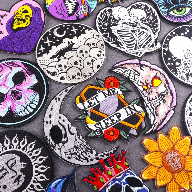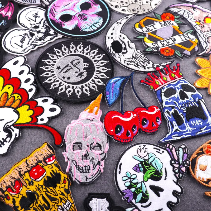 Череп Панк пицца Вышивка Одежда для Аппликации Швейные нашивки на одежде Рок Хиппи наклейки значки для курток Швейные нашивки