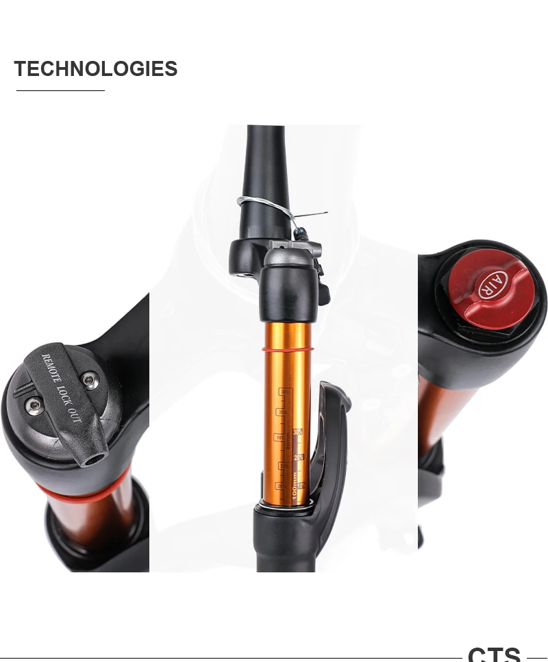 -- Алюминиевая верхняя трубка, разработанная с меткой и кольцом хода, может обеспечить очень интуитивную помощь для регулировки вилки.