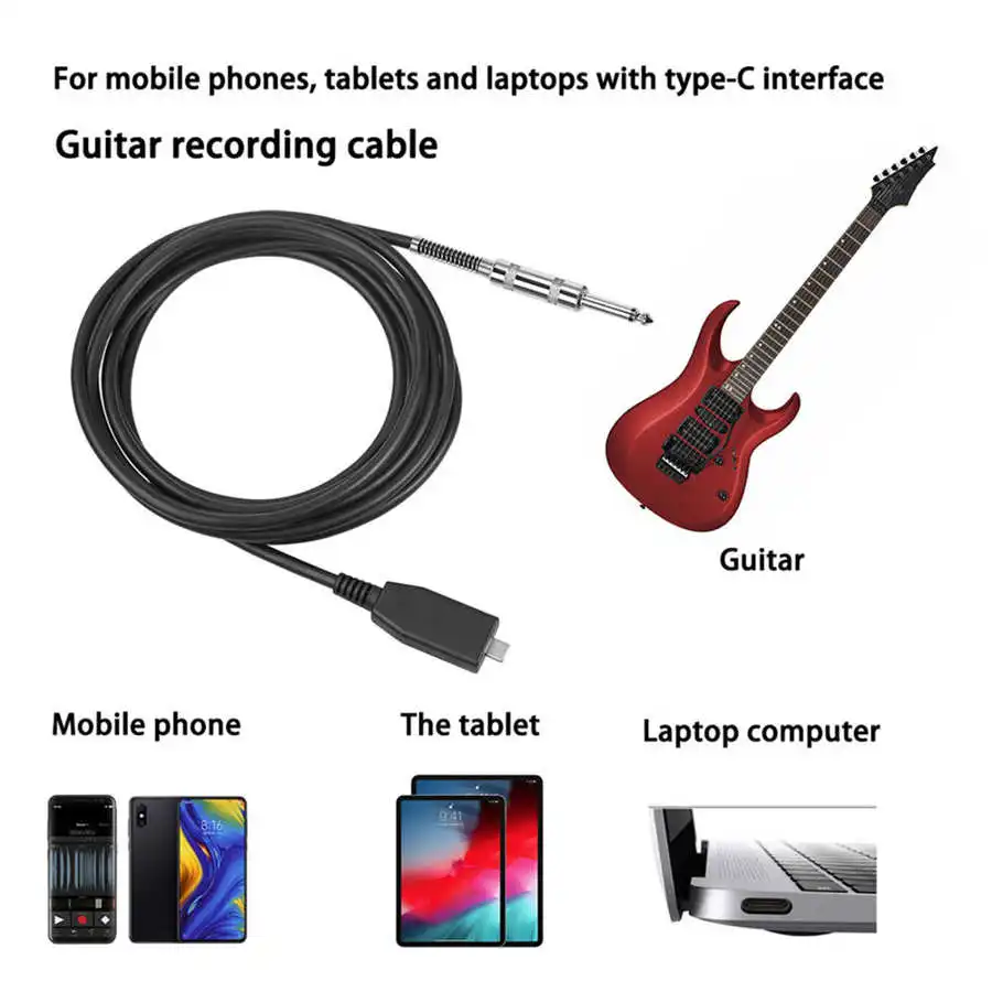 Применение: Этот TYPE-C до 6,35 мм Гитары кабель для записи может помочь вам записывать высокое качество цифровой музыки.