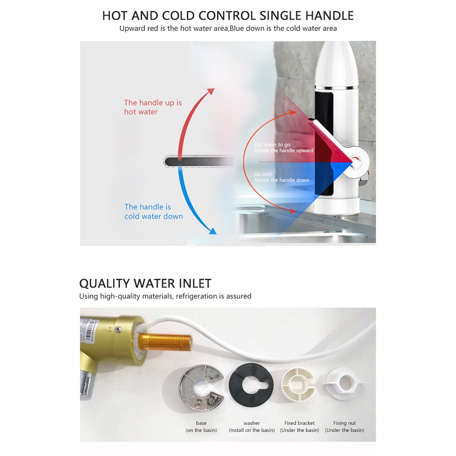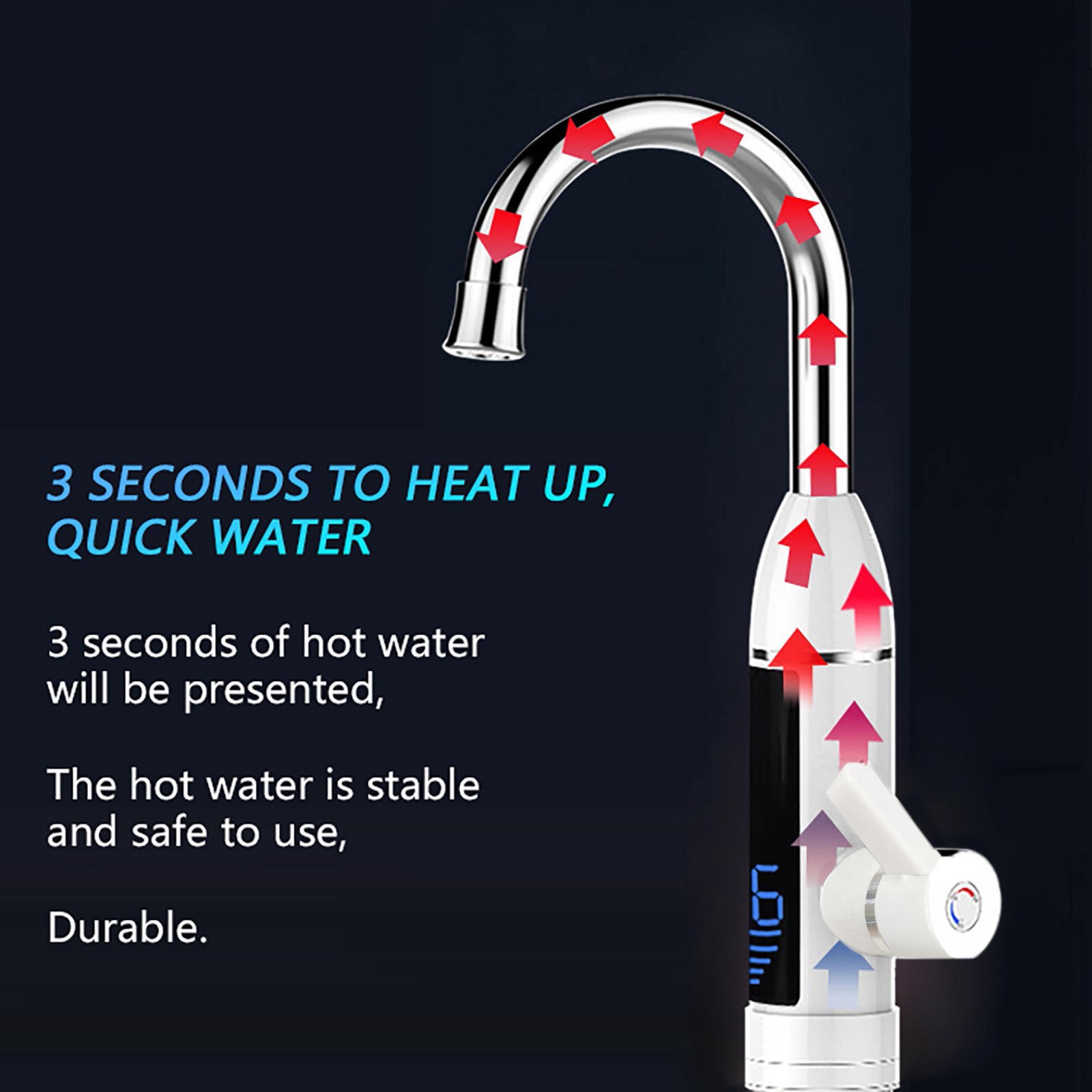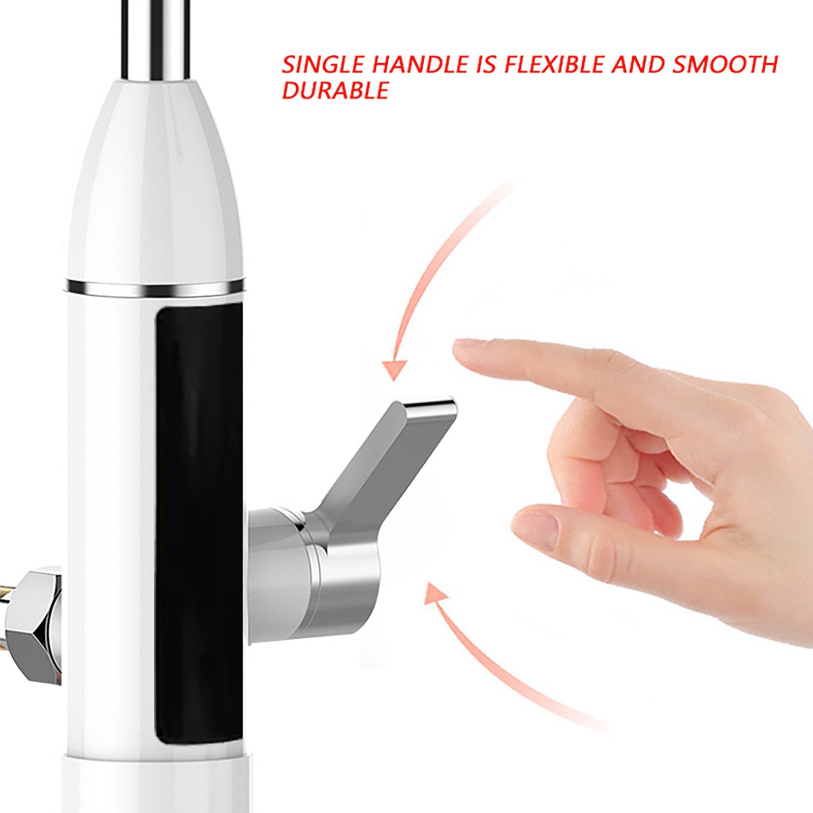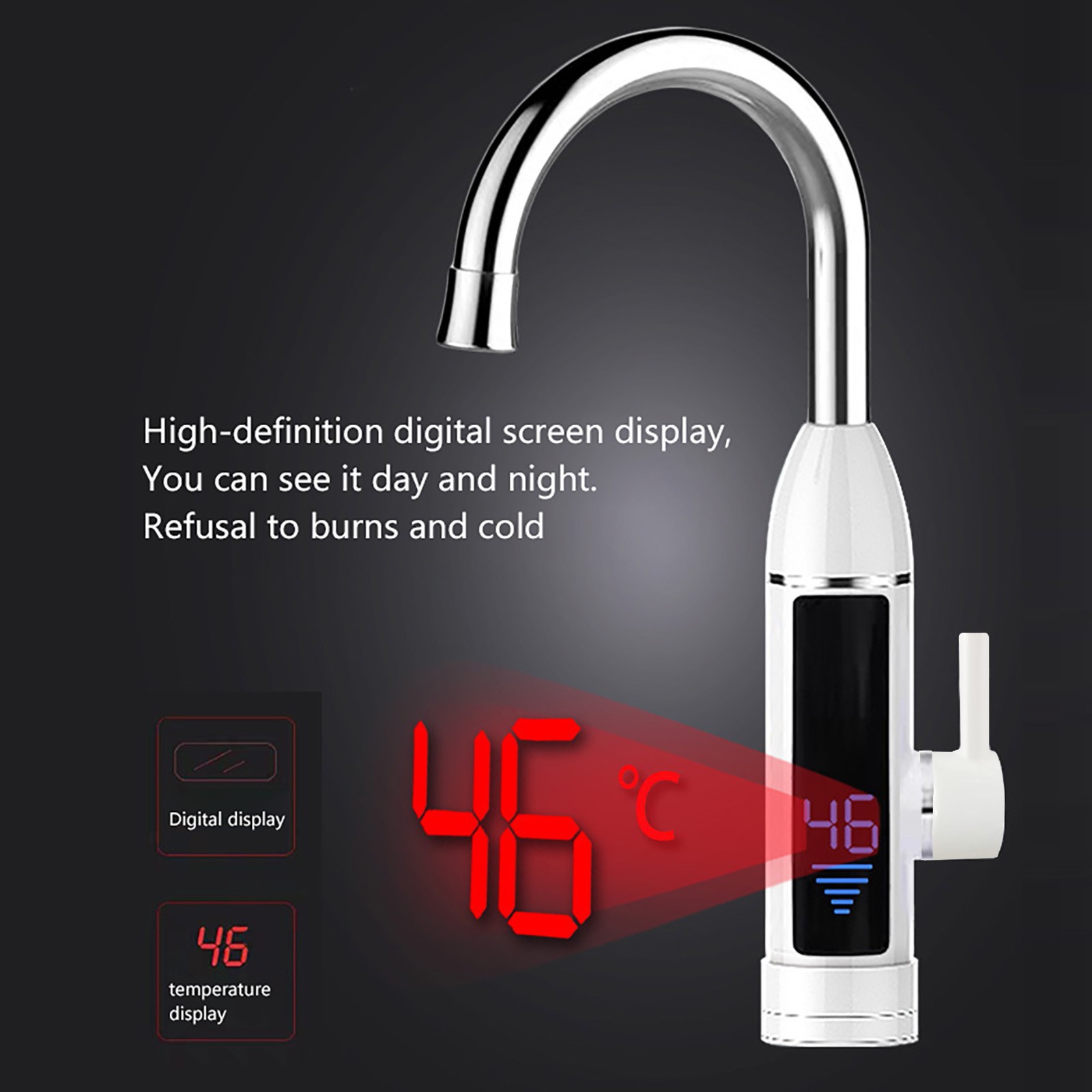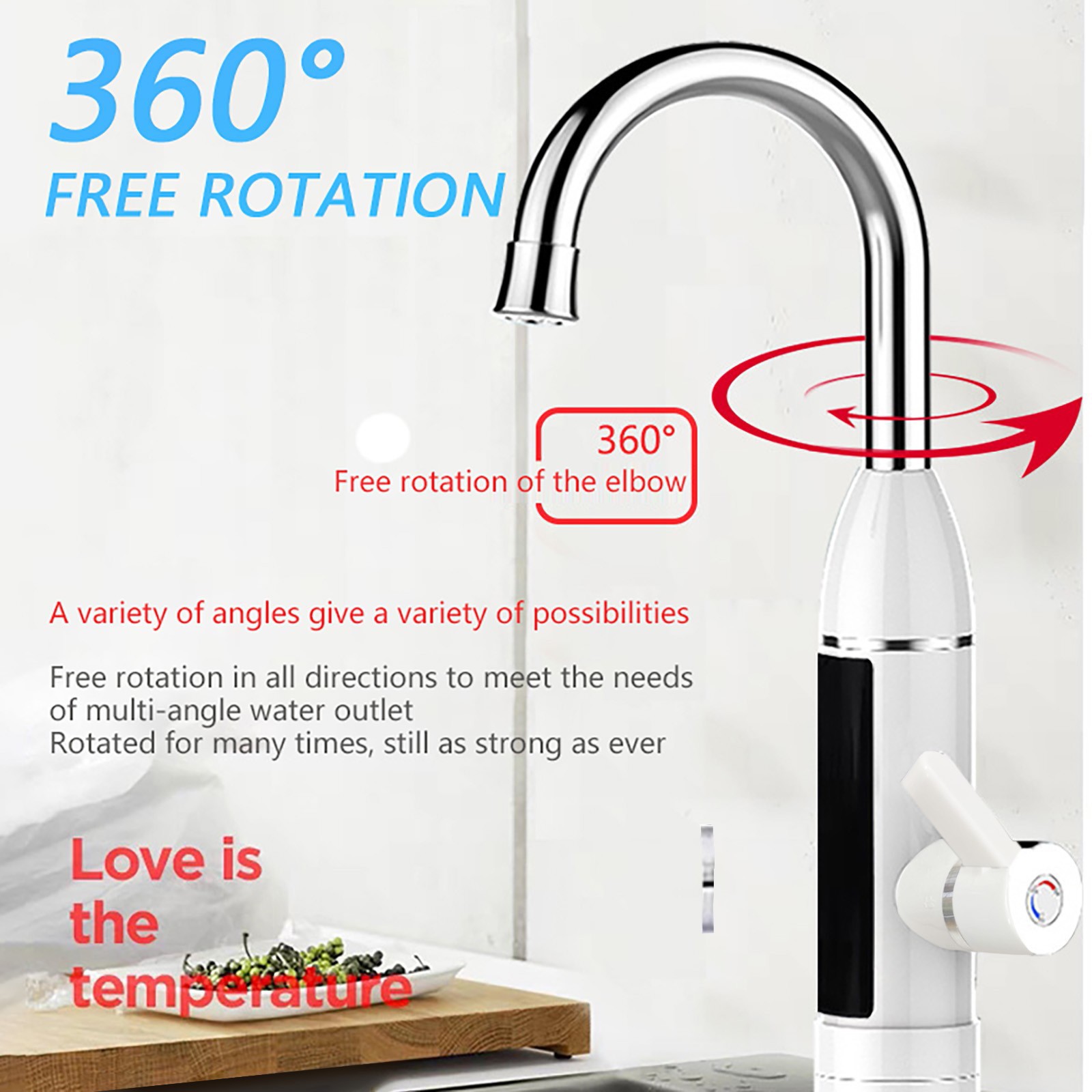 Эффективный, электрический, быстрый нагревательный кран-нет необходимости хранить воду, тем самым уменьшая энергопотребление и экономя деньги. Отрегулируйте рычаг переключения на холодную или горячую воду. Цифровой дисплей температуры воды четко показывает температуру воды, поэтому вам больше не нужно чувствовать температуру руками, что делает вашу жизнь более комфортной. Вращающийся на 360 ° кран позволяет свободно регулировать направление выхода воды-подходит для двойных кухонных раковин. Кран изготовлен из высококачественных материалов, прочный, прочный, Безопасный в использовании и не легко возраст.Продукты включают в себя