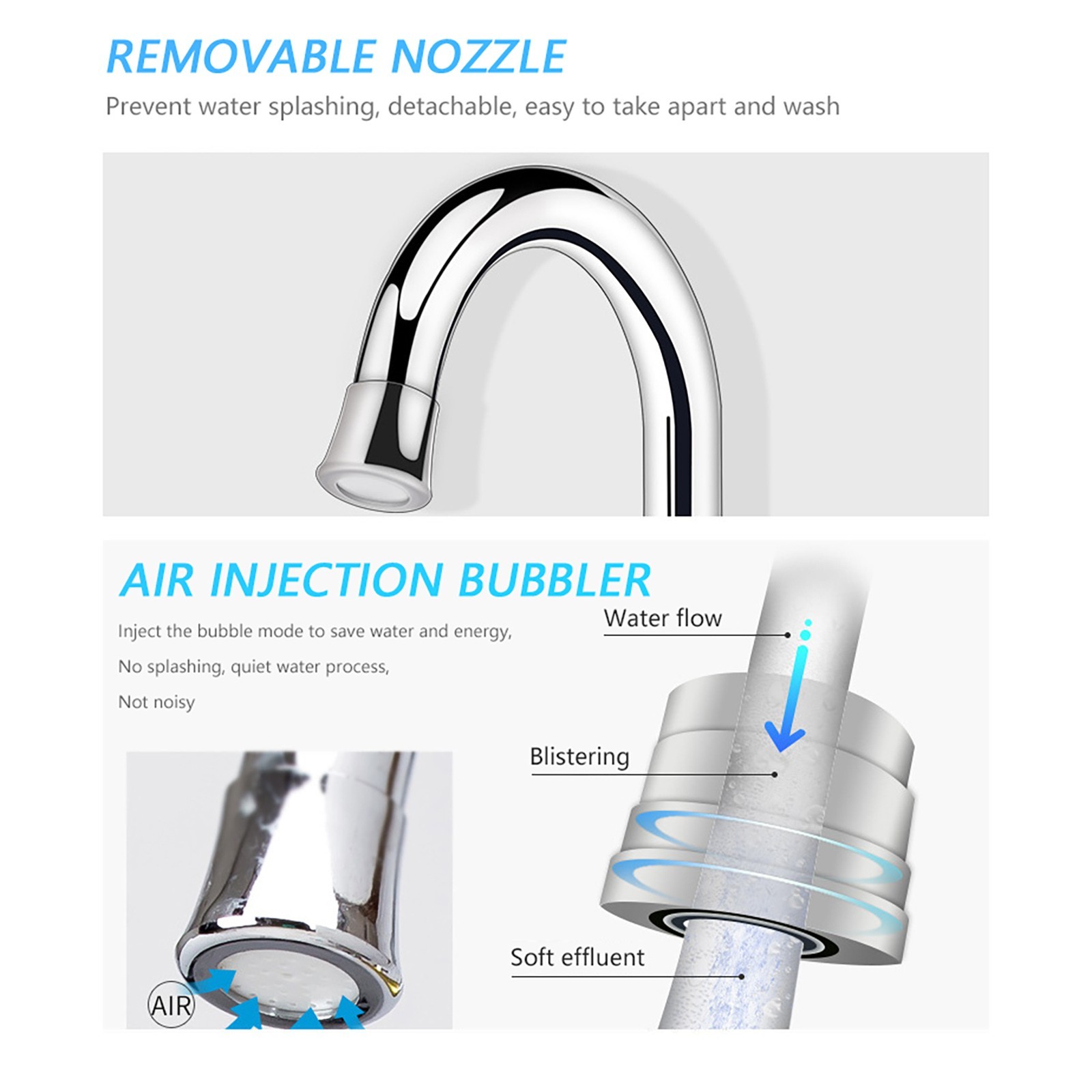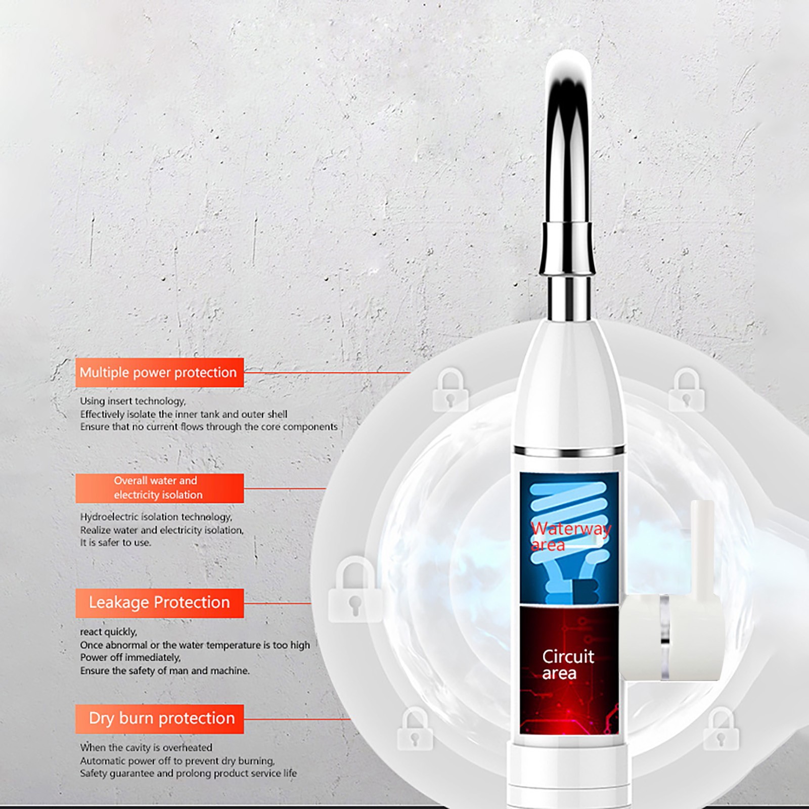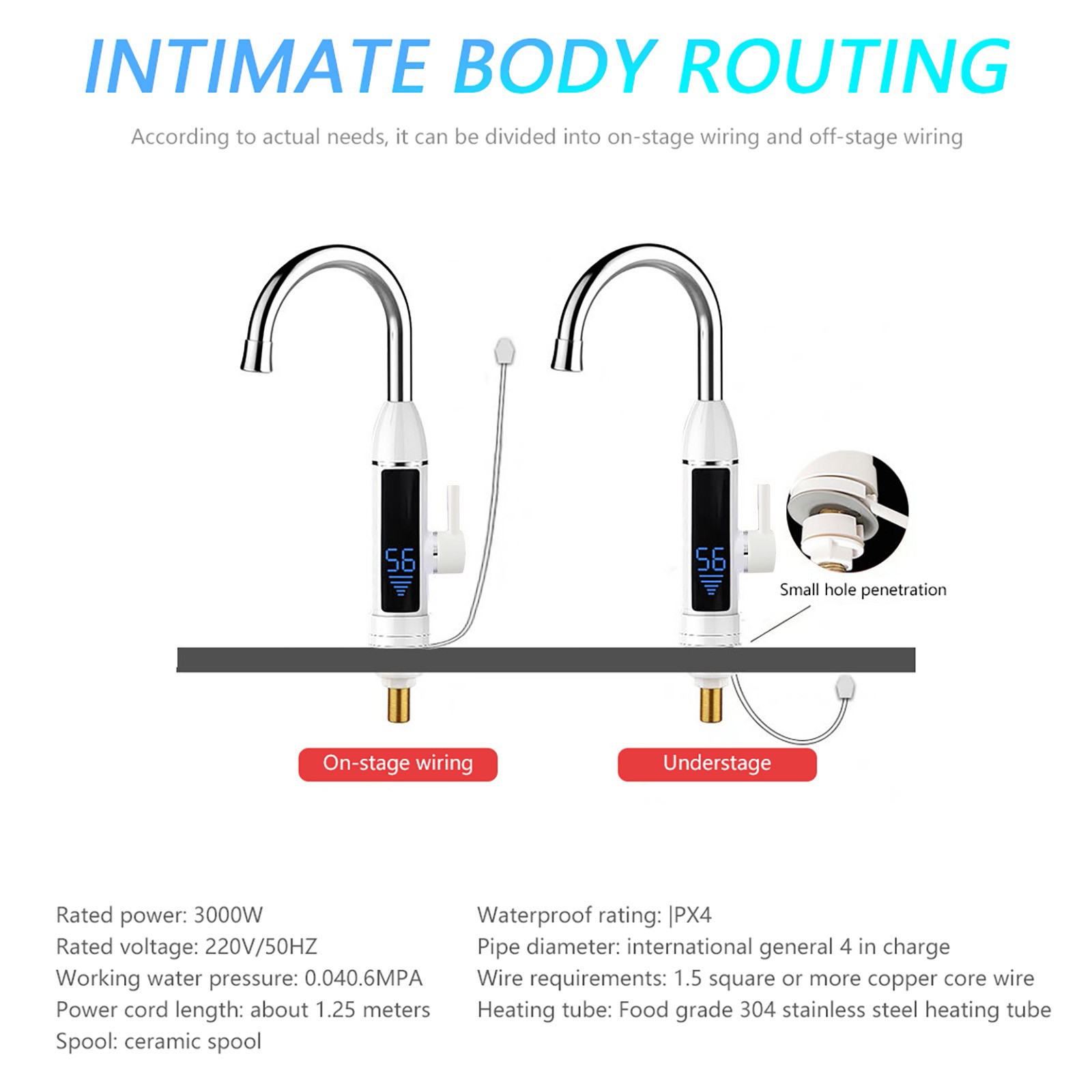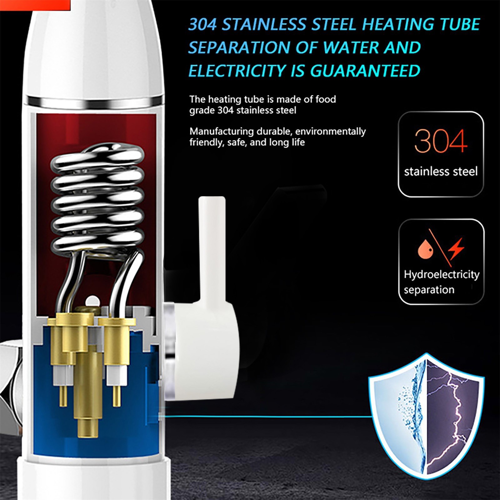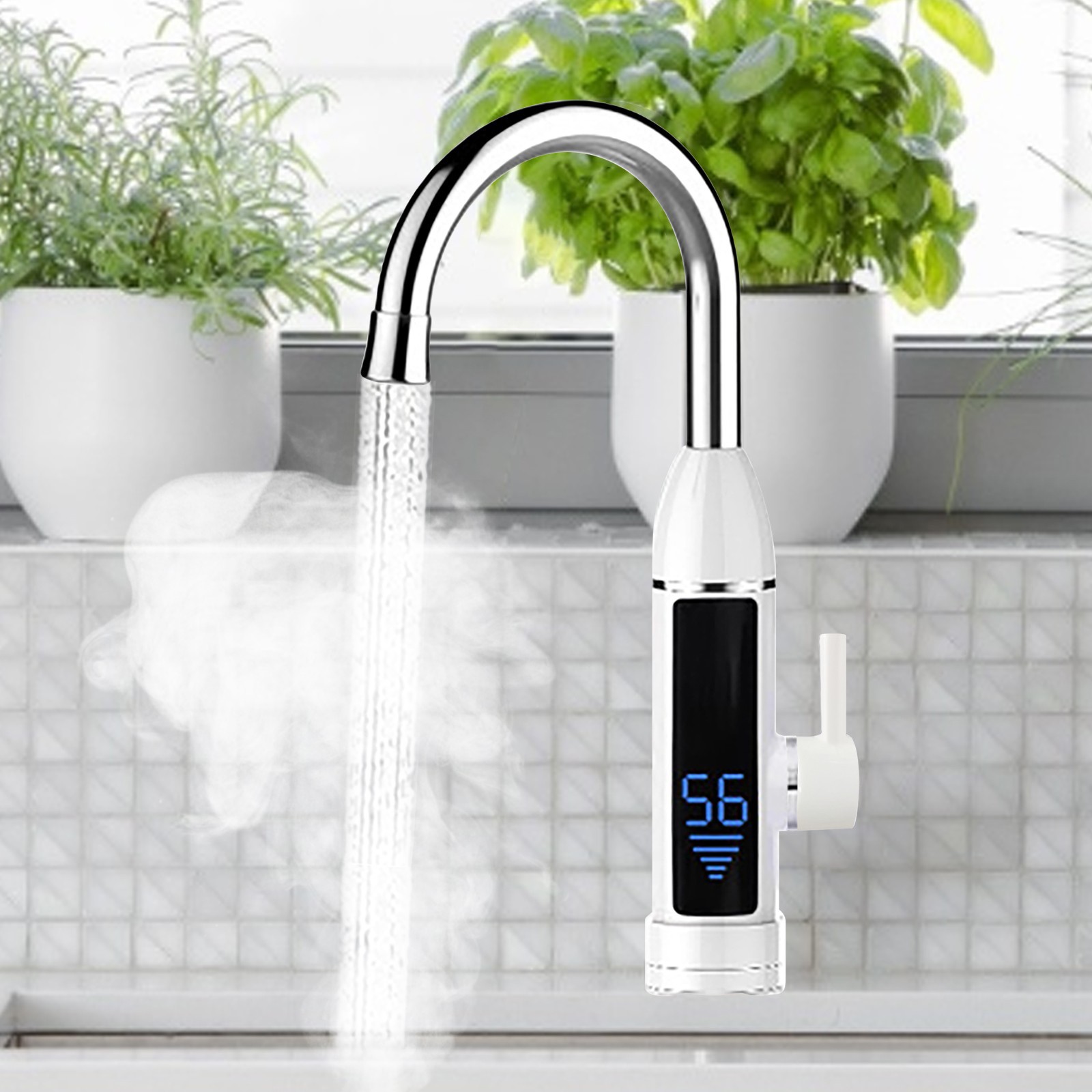 Эффективный, электрический, быстрый нагревательный кран-нет необходимости хранить воду, тем самым уменьшая энергопотребление и экономя деньги. Отрегулируйте рычаг переключения на холодную или горячую воду. Цифровой дисплей температуры воды четко показывает температуру воды, поэтому вам больше не нужно чувствовать температуру руками, что делает вашу жизнь более комфортной. Вращающийся на 360 ° кран позволяет свободно регулировать направление выхода воды-подходит для двойных кухонных раковин. Кран изготовлен из высококачественных материалов, прочный, прочный, Безопасный в использовании и не легко возраст.Продукты включают в себя