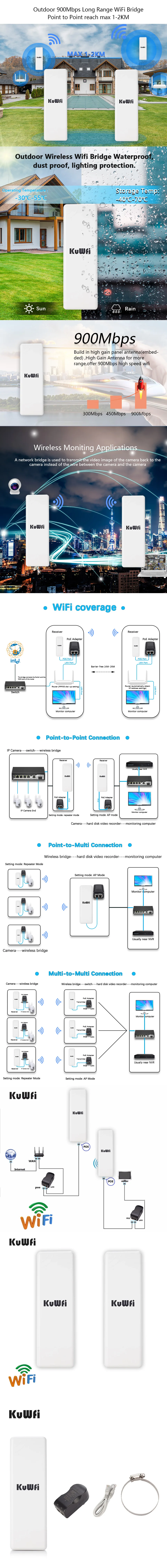Уличный CPE Wi-Fi роутер KuWFi 900 Мбит/с, наружный беспроводной мост, CPE 5,8 ГГц, беспроводной маршрутизатор высокой мощности, точка-точка 2 км, Wi-Fi диапазон, Wi-Fi репитер, Wi-Fi удлинитель