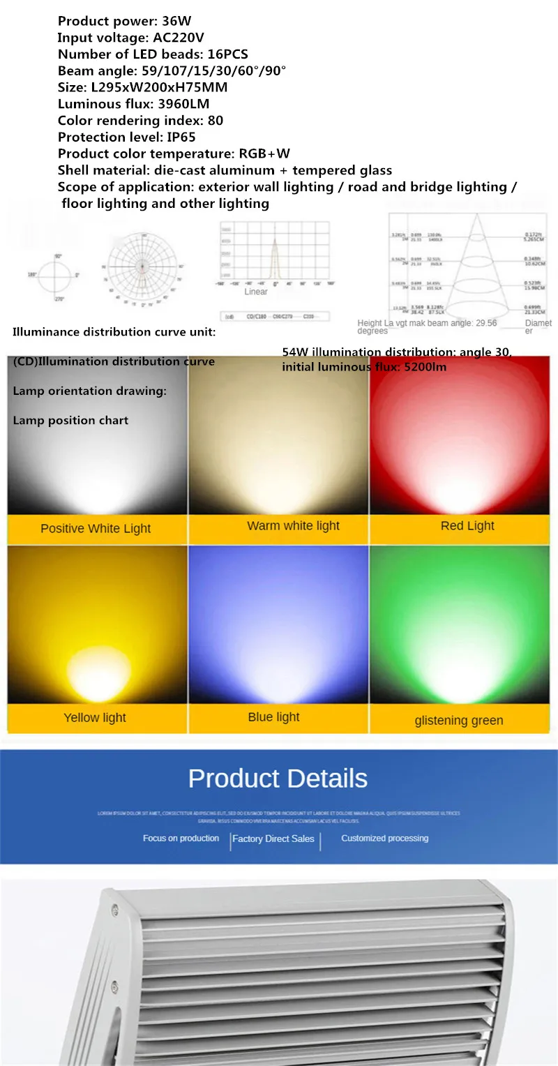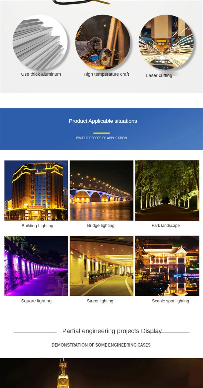 Область применения: наружное освещение стен/дорожное и мостовое освещение/напольное освещение и другое освещение