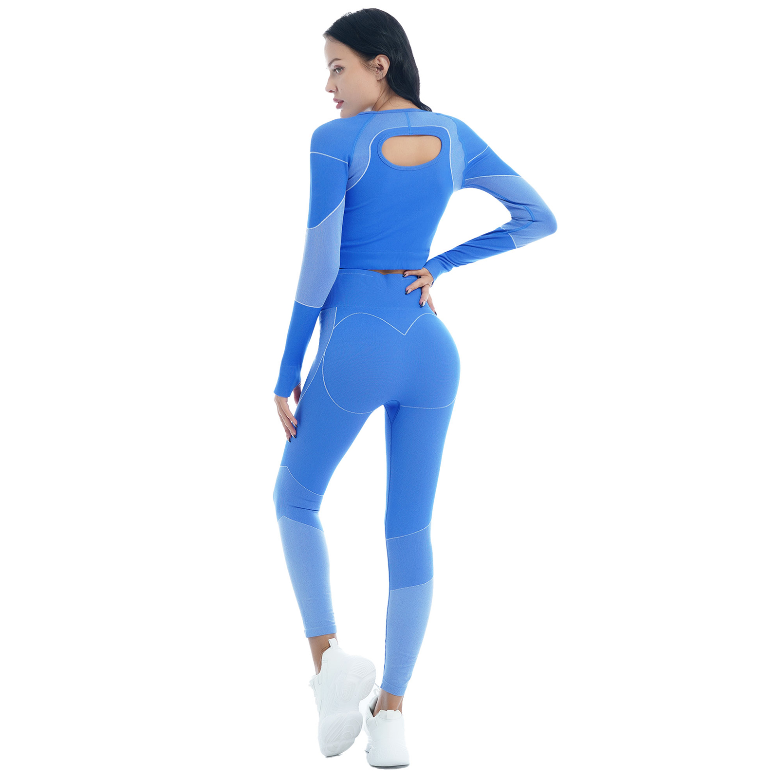 Чистый цвет, Замочная скважина на спине, укороченный топ, высокая талия, широкий эластичный пояс, Покажите свою заднюю часть.