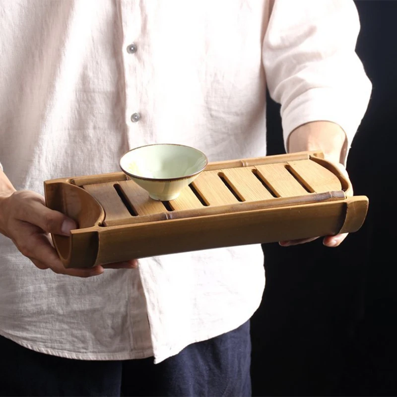 Бамбуковый поднос для чая Gongfu аксессуары для церемонии хранения воды со сливной полкой чайный горшок с блюдцем большой держатель