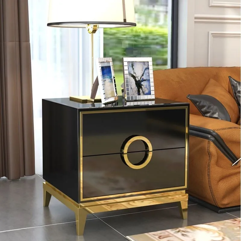 Зеркальный прикроватный столик, деревянная тумбочка, прикроватный столик minotti, тумбочка черного золота, проблемные тумбочки, черная Лаковая тумбочка