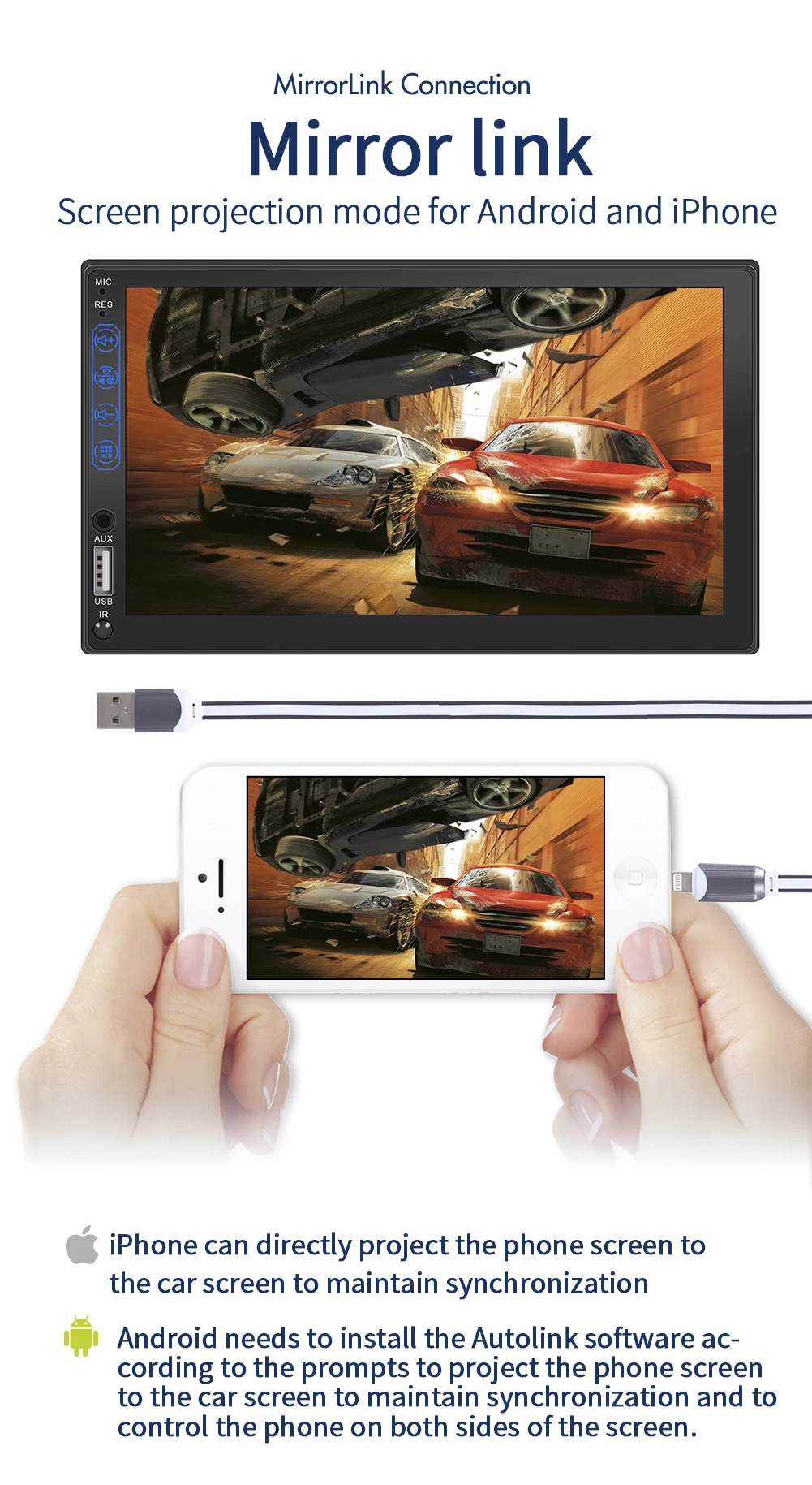 2Din универсальный 7 дюймов полный сенсорный экран Carplay радио автомобиль Mp5 плеер Bluetooth Зеркало Ссылка Android Авто/iphone CarPlay радио