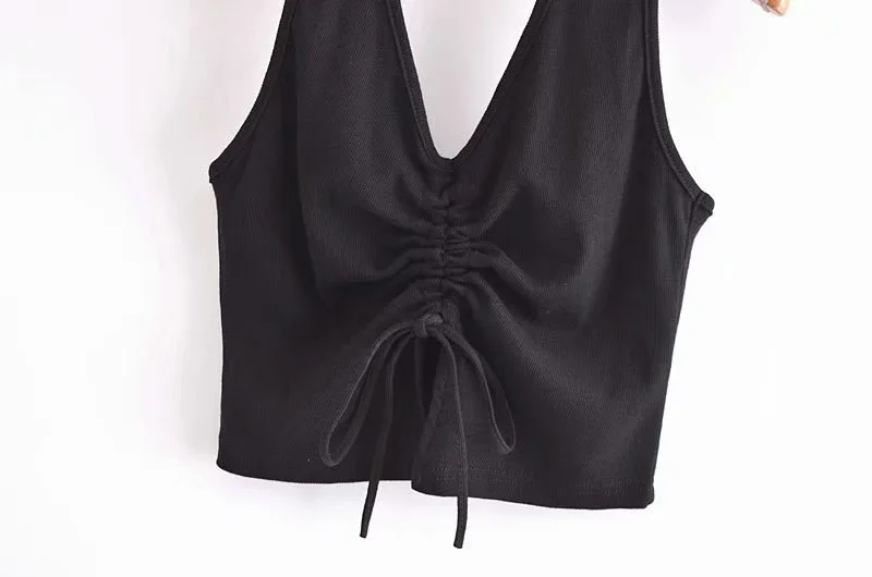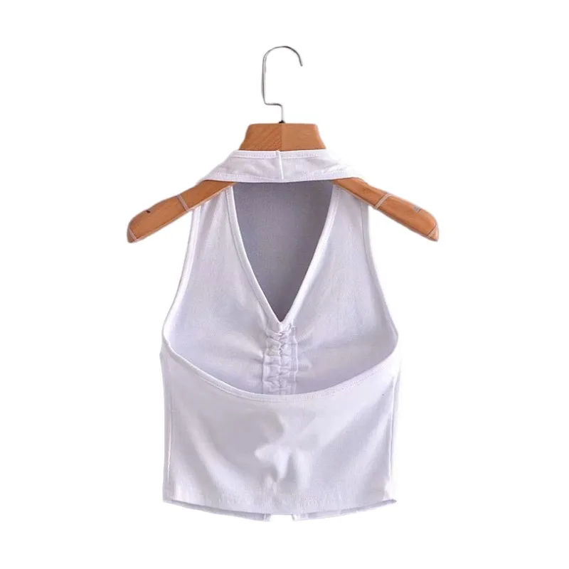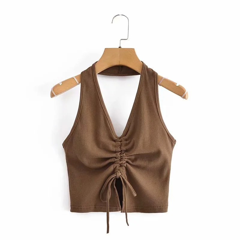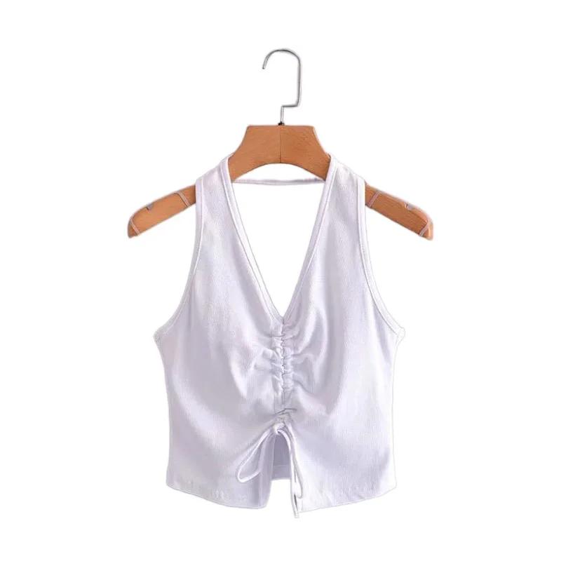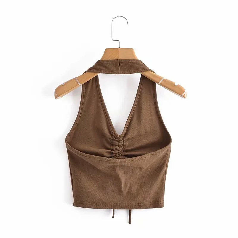 2021 летняя новая женская одежда в европейском и американском стиле с v-образным вырезом и бретельками сзади, короткий шнурок, сексуальный топ с открытой спиной