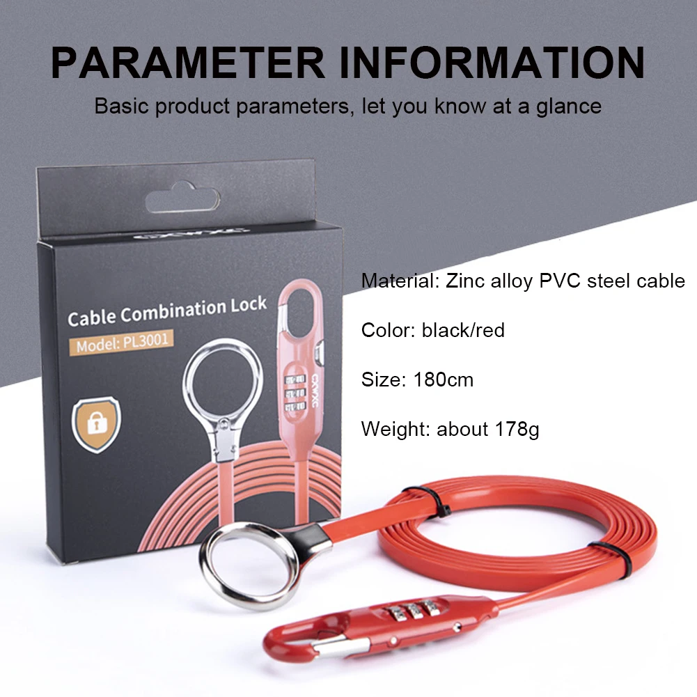 * 2. Толстая стальная проволока, покрытая ПВХ, для водонепроницаемости составляет 180 см и может быть свободно намотана, согнута, запутанна для блокировки различных предметов.