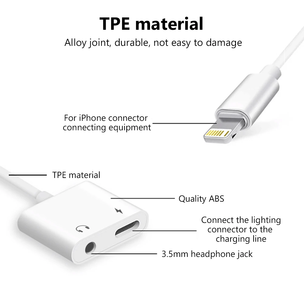 Lighting to 3.5mm Jack Audio 2 in 1 Adapter for iPhone 7 8 Plus X XS 11 12 Pro Max Earphones Converter Charging Connector Cable